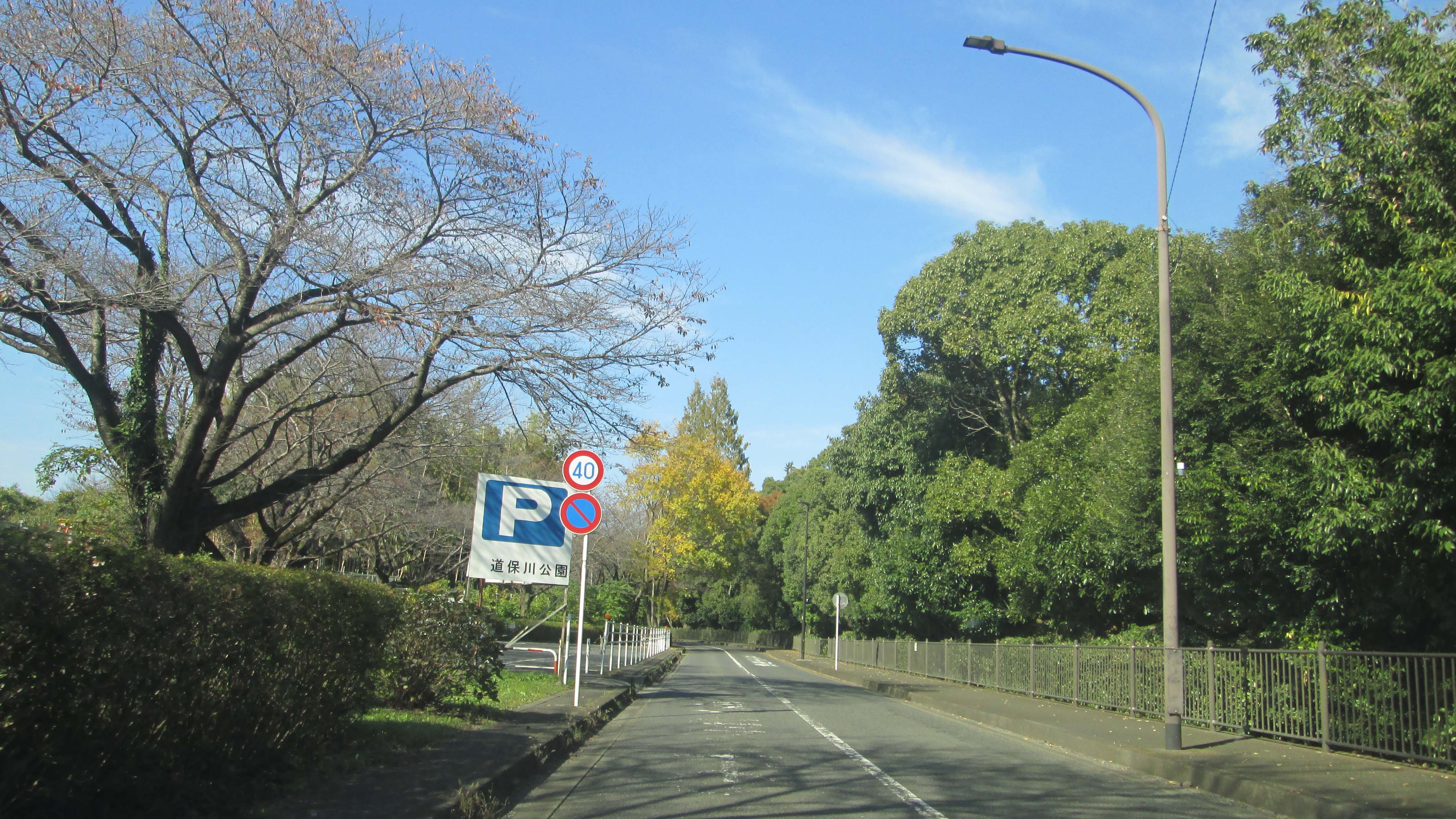 道保川公園も徐々に色づきだした。 | 横山公園の前 | |