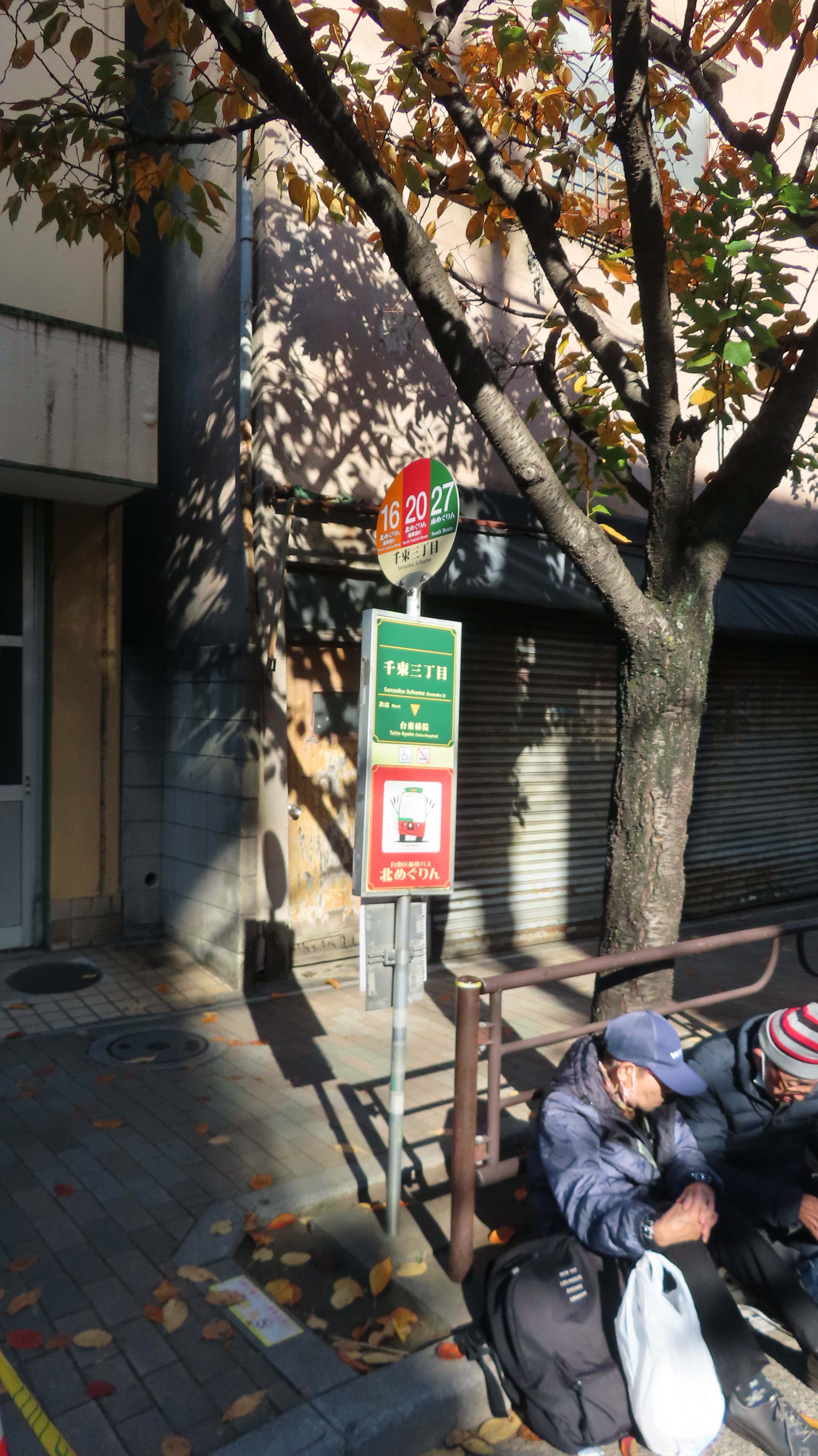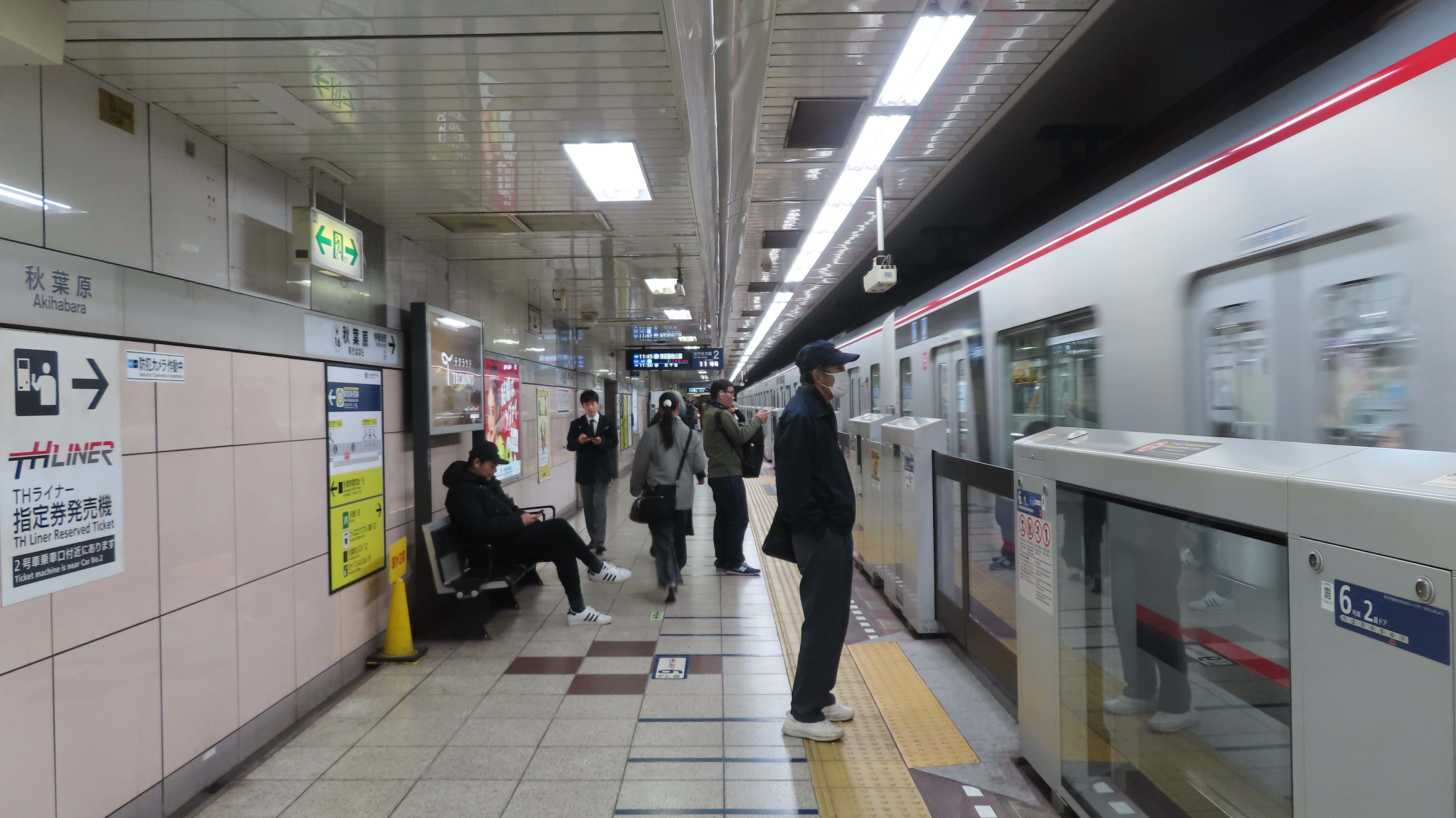 | 秋葉原駅で日比谷線に乗り換え。 | きれいなお姉ちゃんが席を詰めて私たちが座れるようにしてくれた。 | 入谷駅に到着。 朝は寒かったが、昼頃には ジャンパー不要になっていた。 |