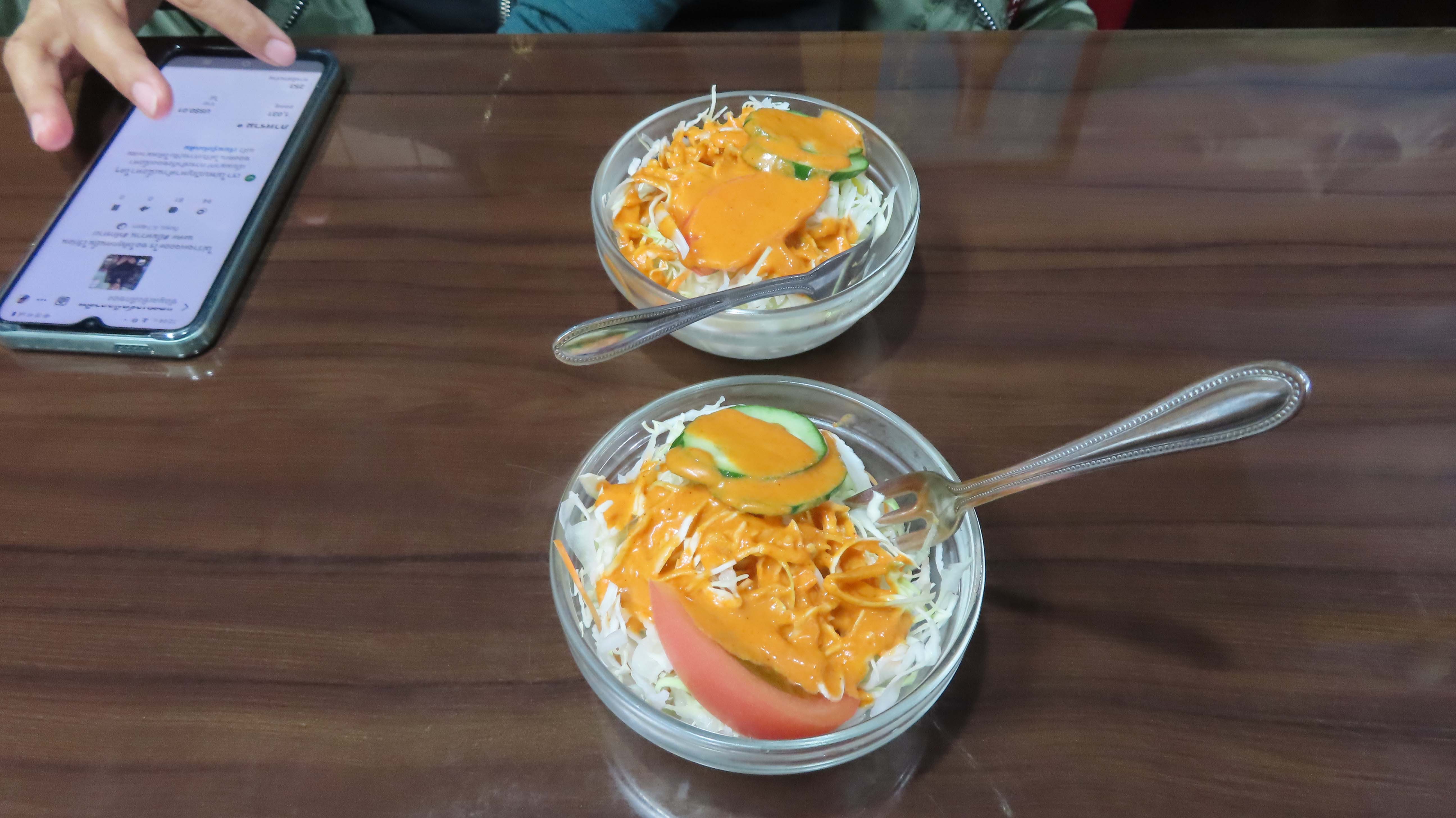 ネパール人が経営しているらしい。 | サラダ付き | ナンとカレー \1,000 むちゃくちゃうまかった。飲み物付き |