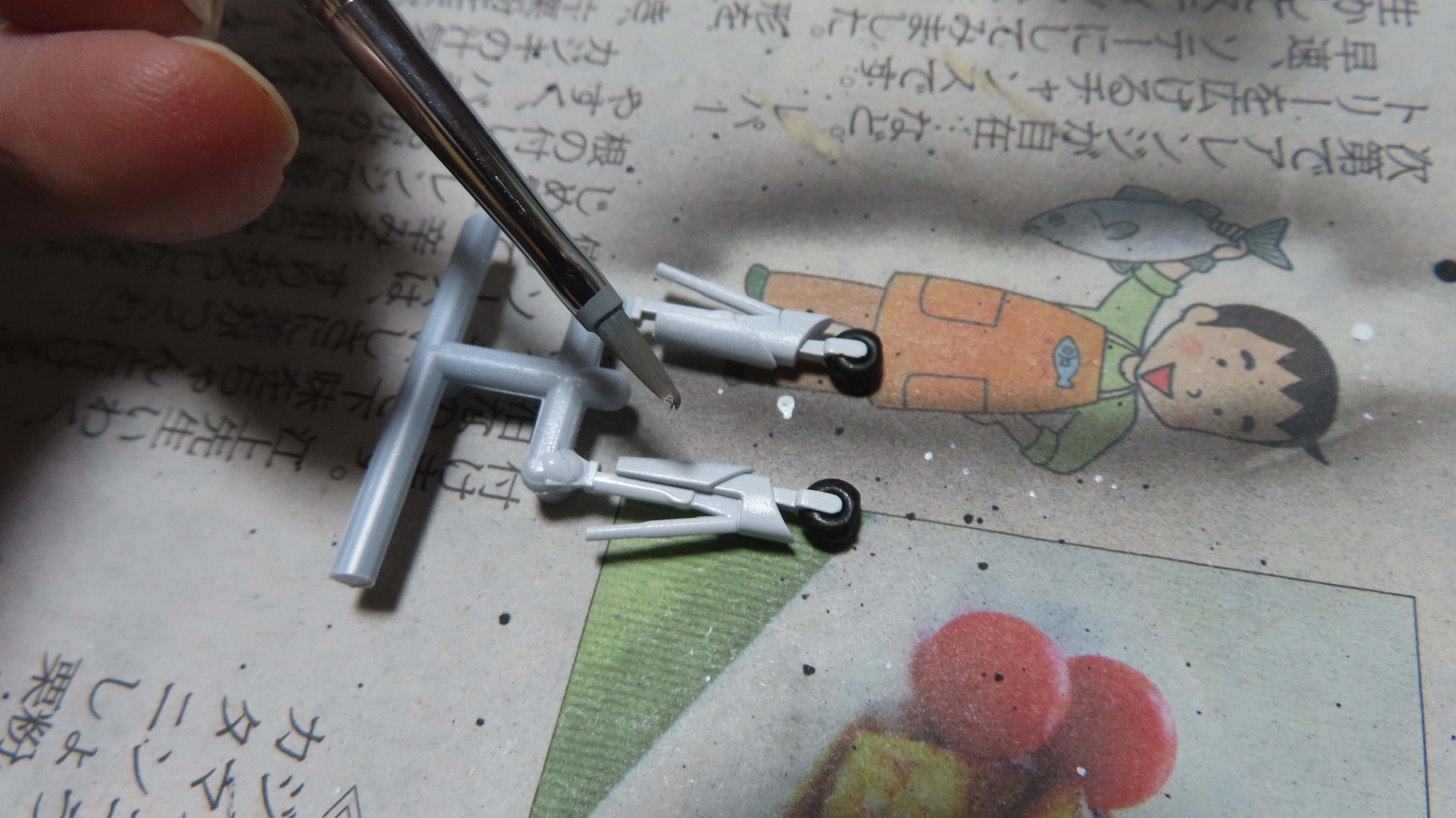 | 補助輪を335グレーで筆塗り | 細かい部分のシルバー塗装 | 翼端灯の塗装 | エンジンの取り付け |