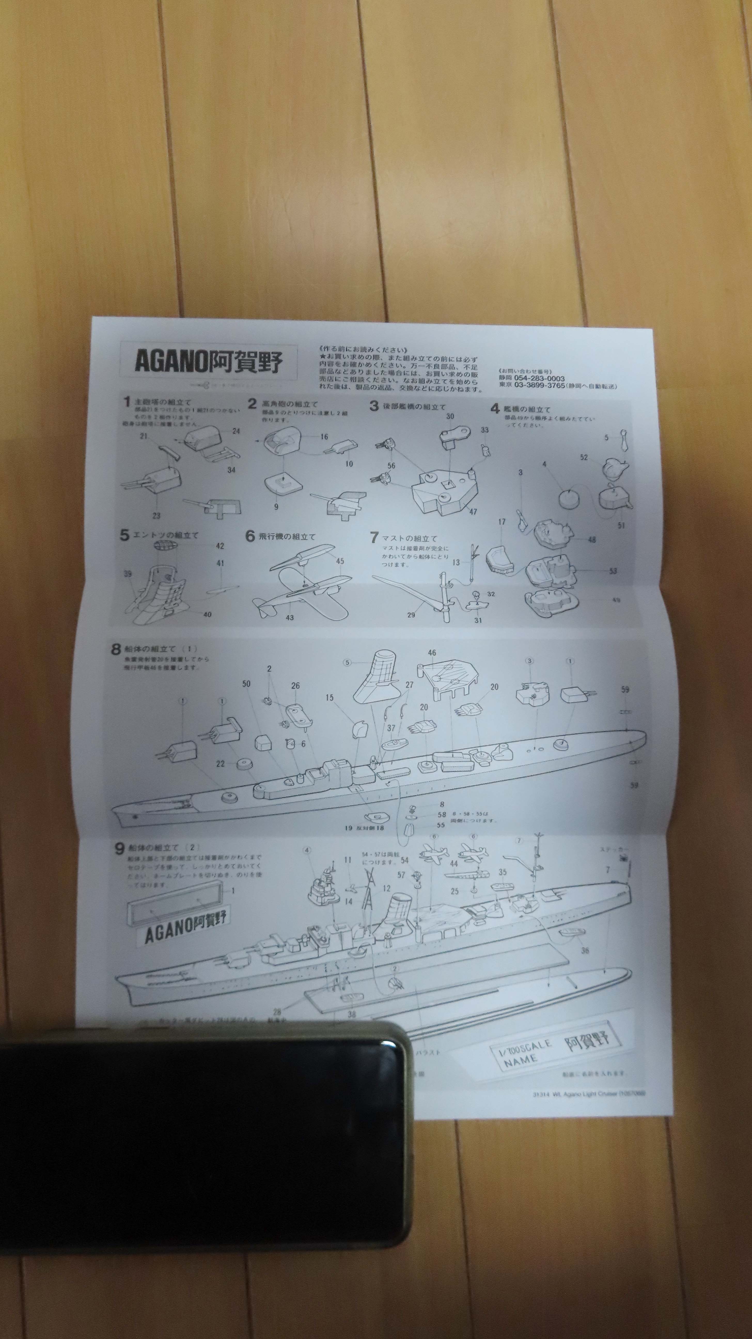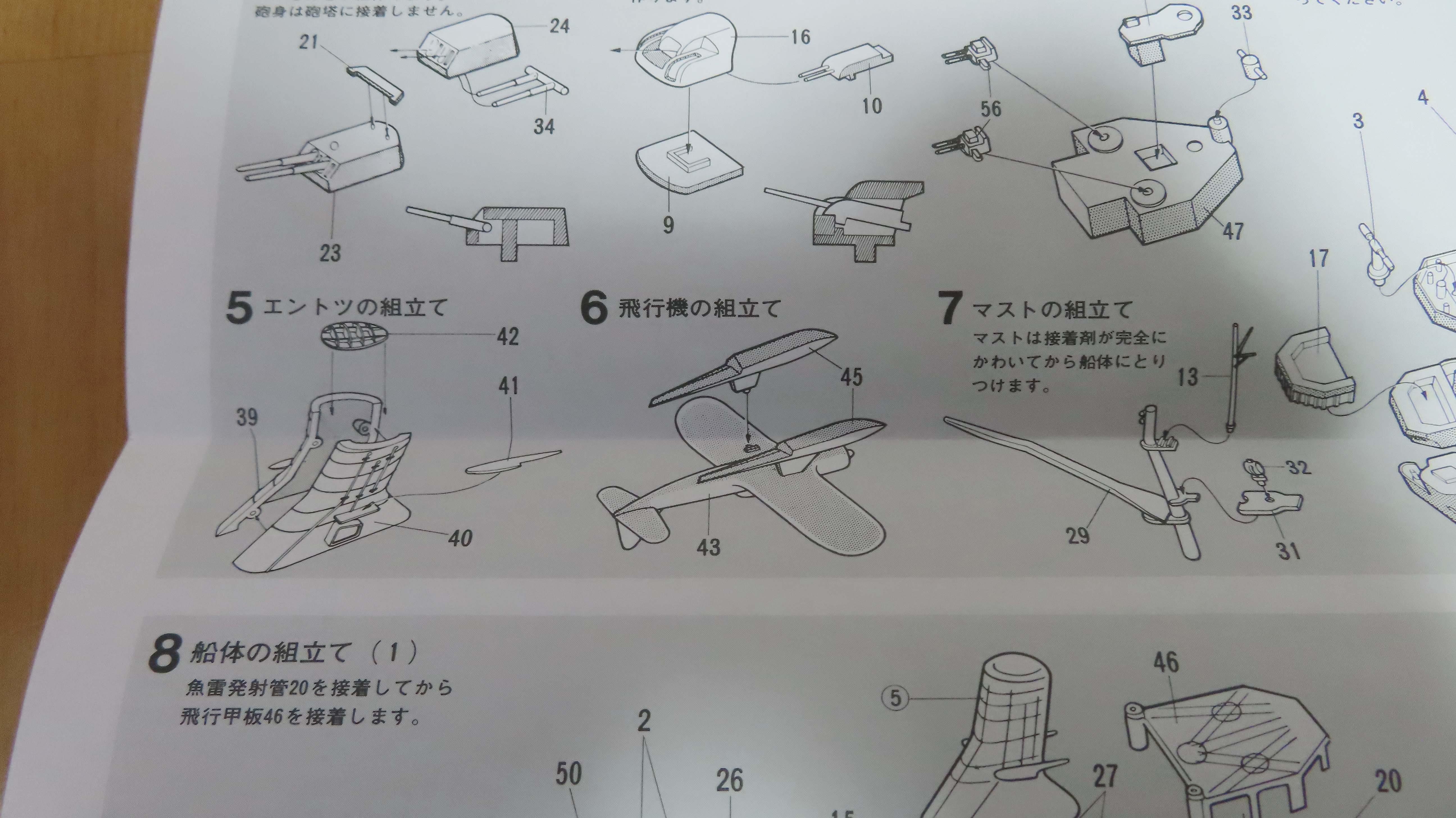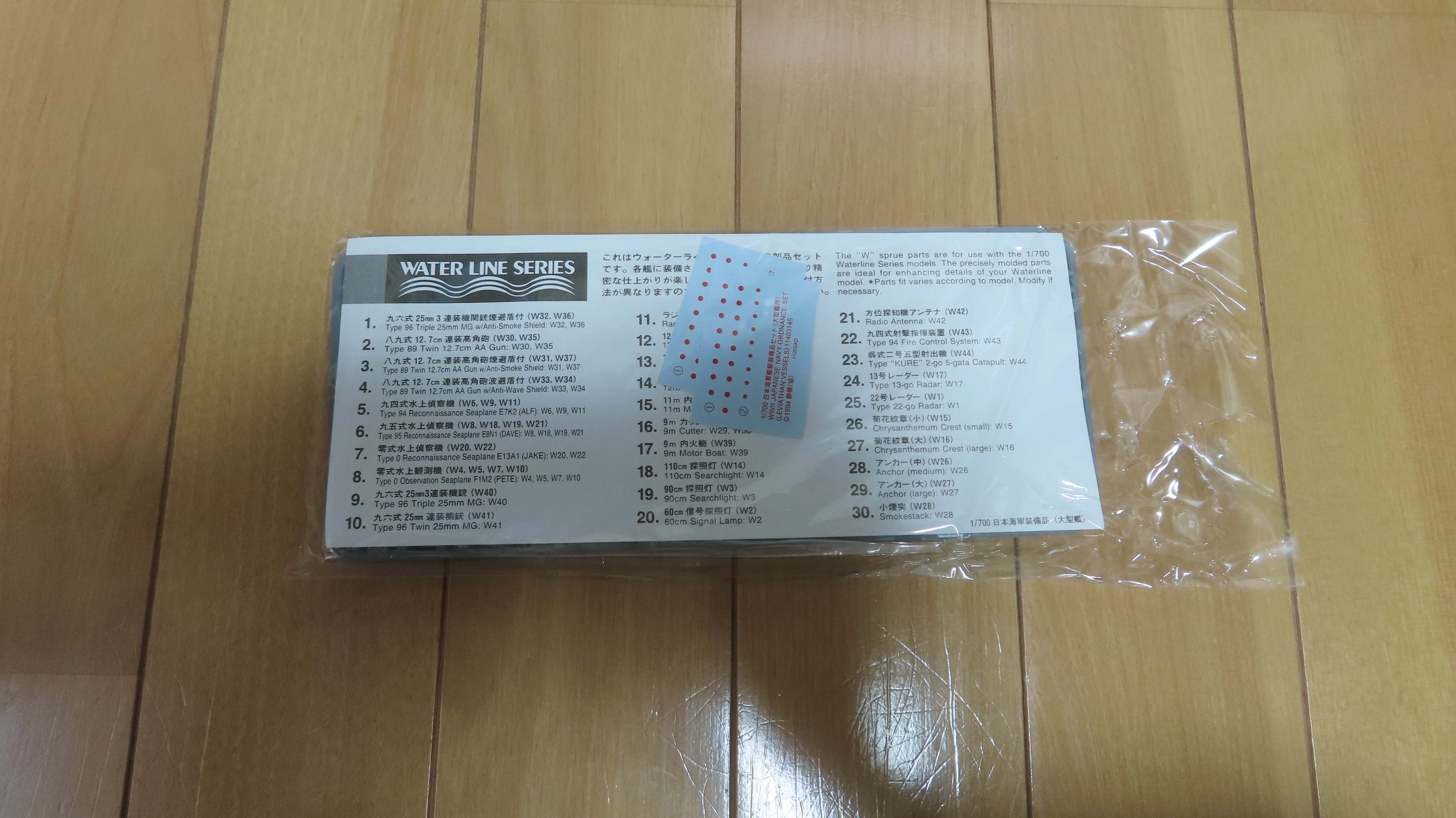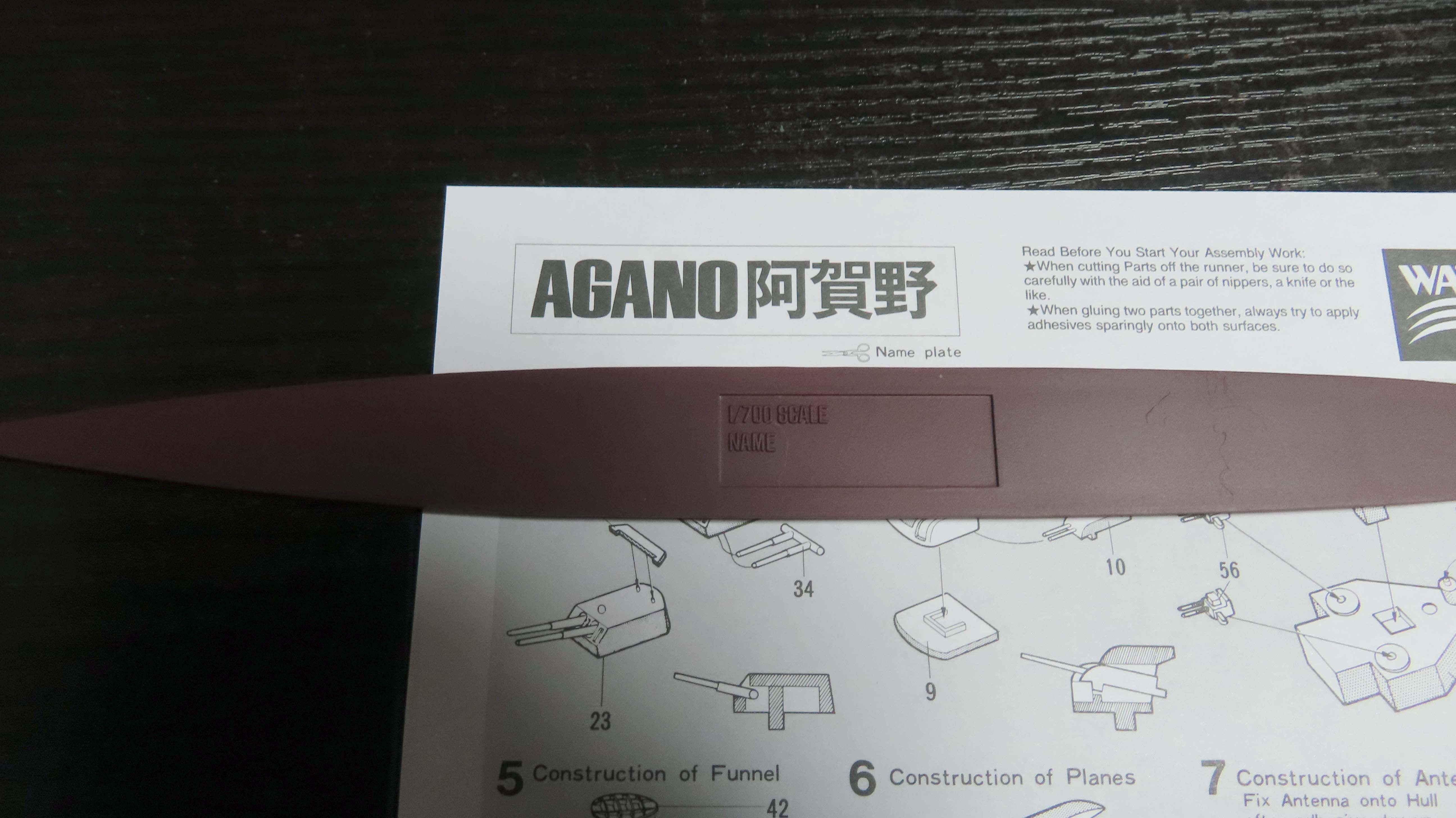 艦名のステッカーは付属しない。 説明書の文字を 切り抜けということらしい・・・ |