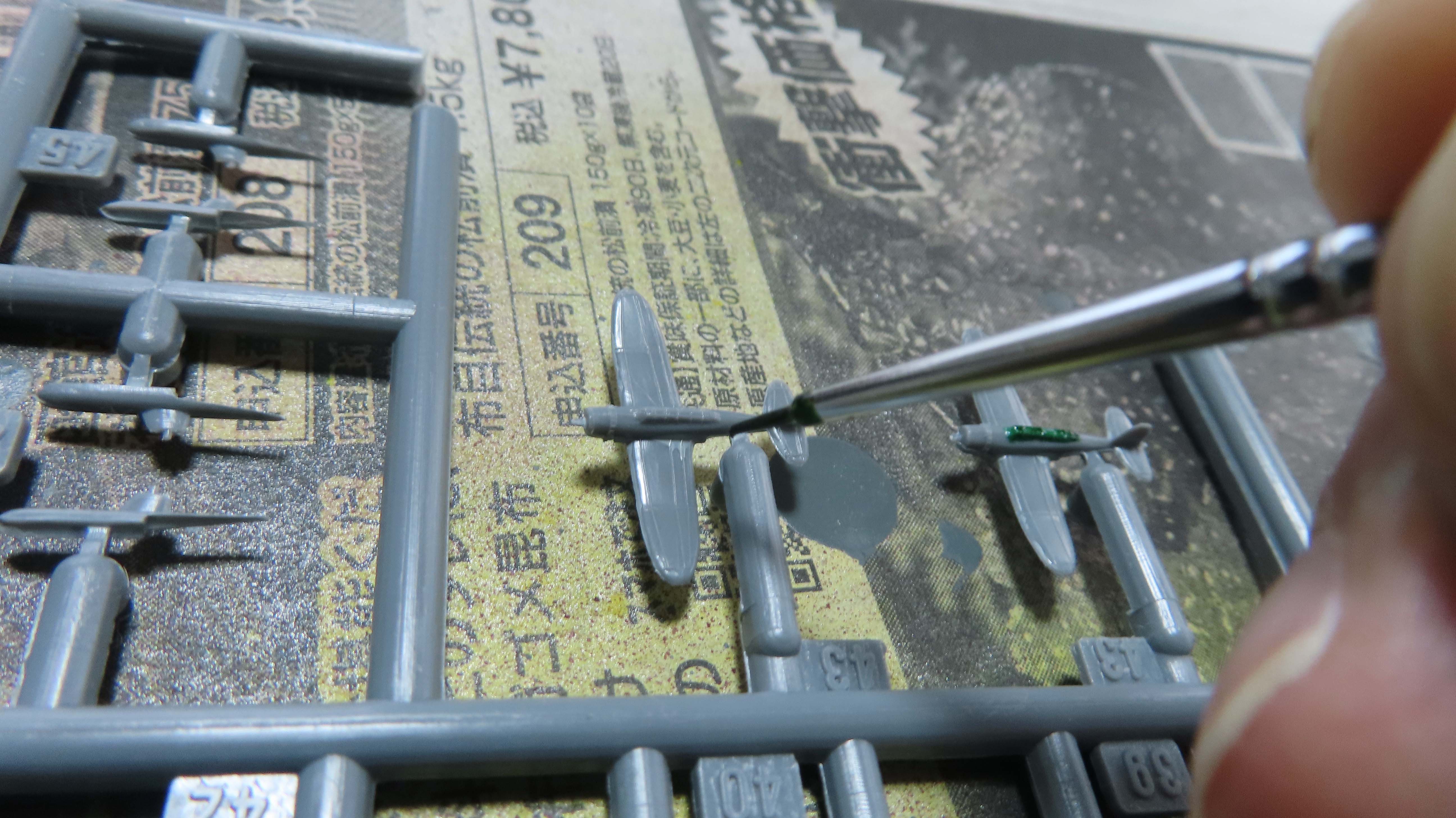 零水のキャノピーを クリアーグリーンで塗る。 |