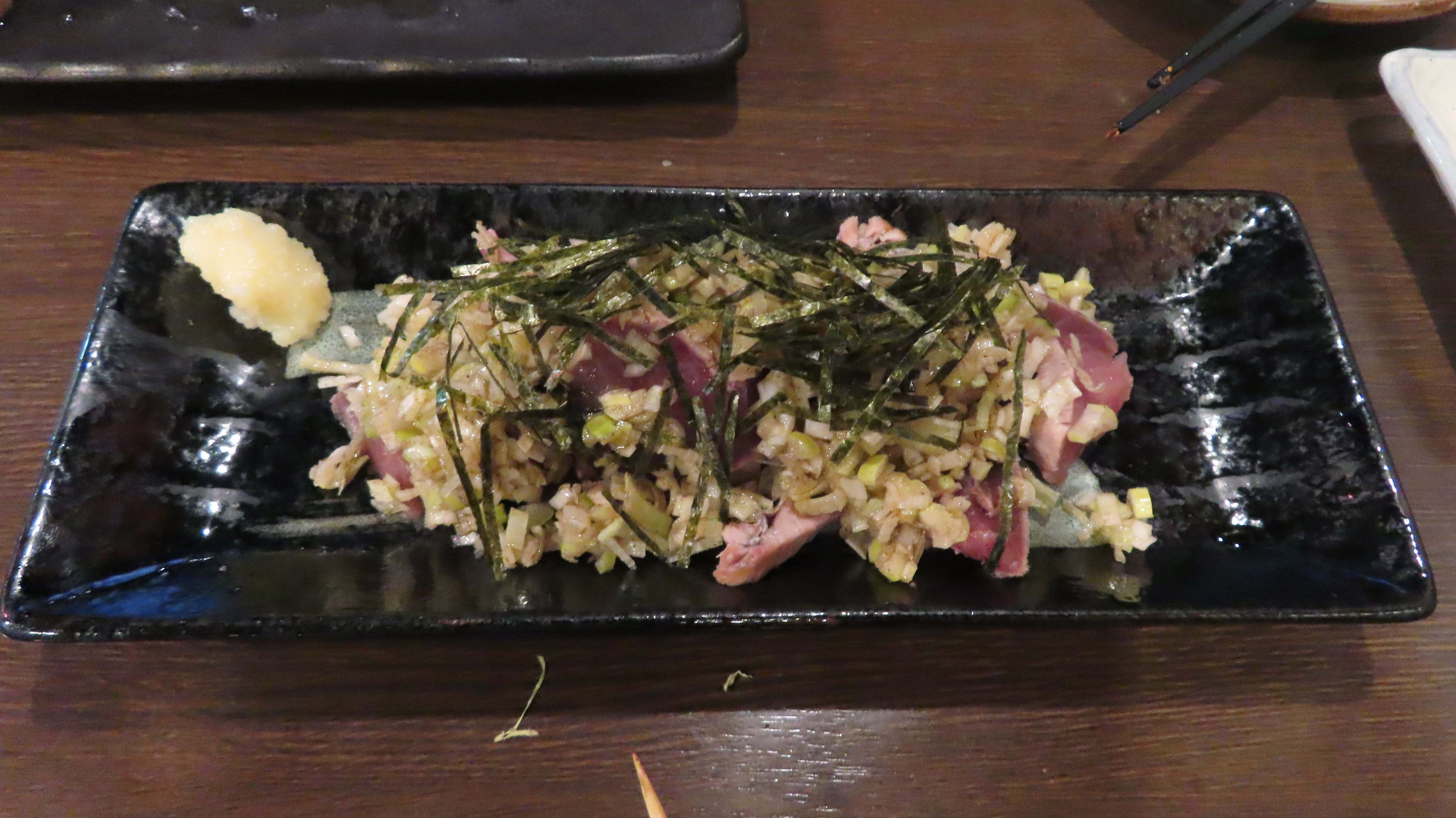 | カツオの竜田揚げ\580 | カツオのネギ塩カルパッチョ \680 | ||