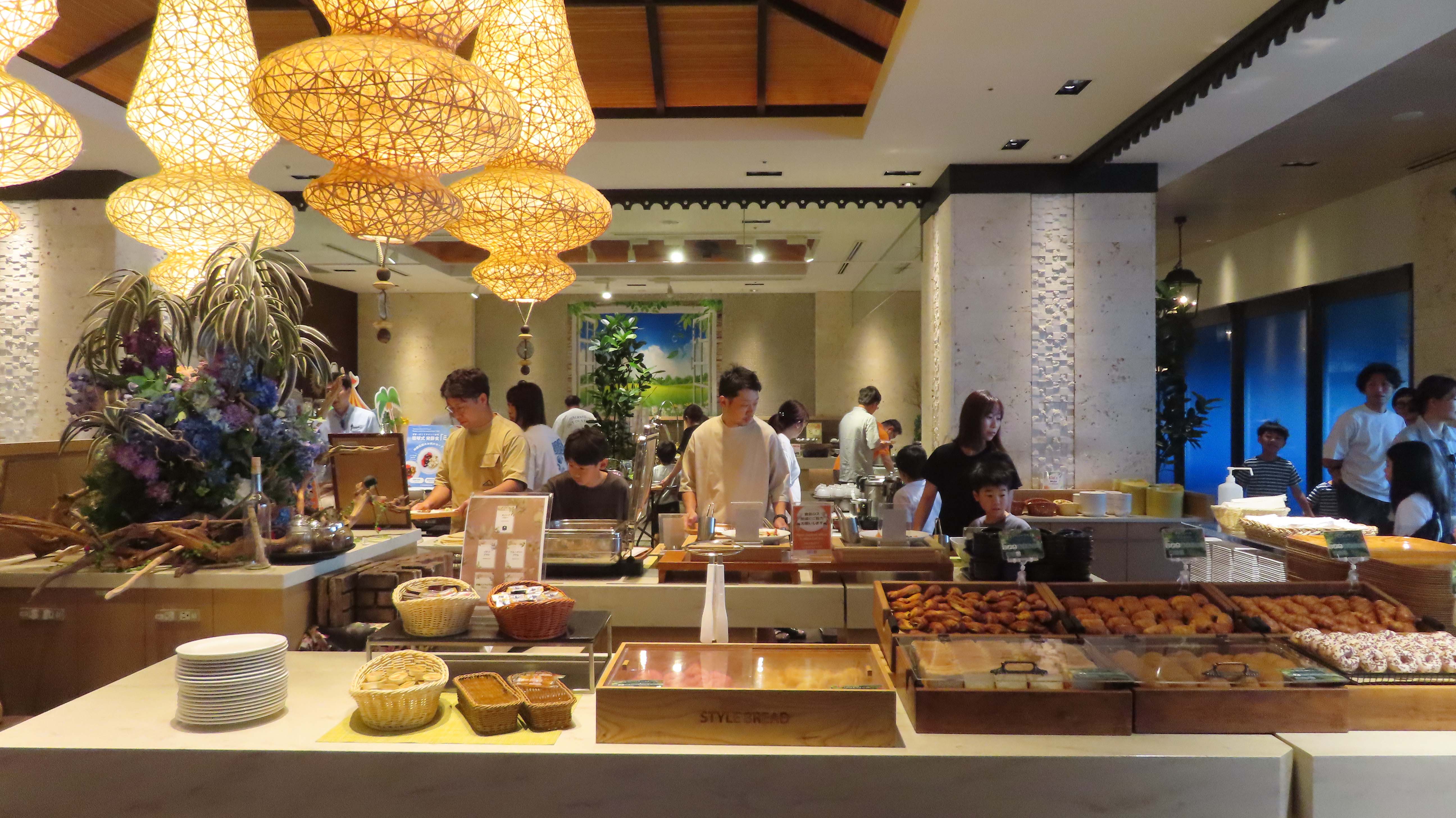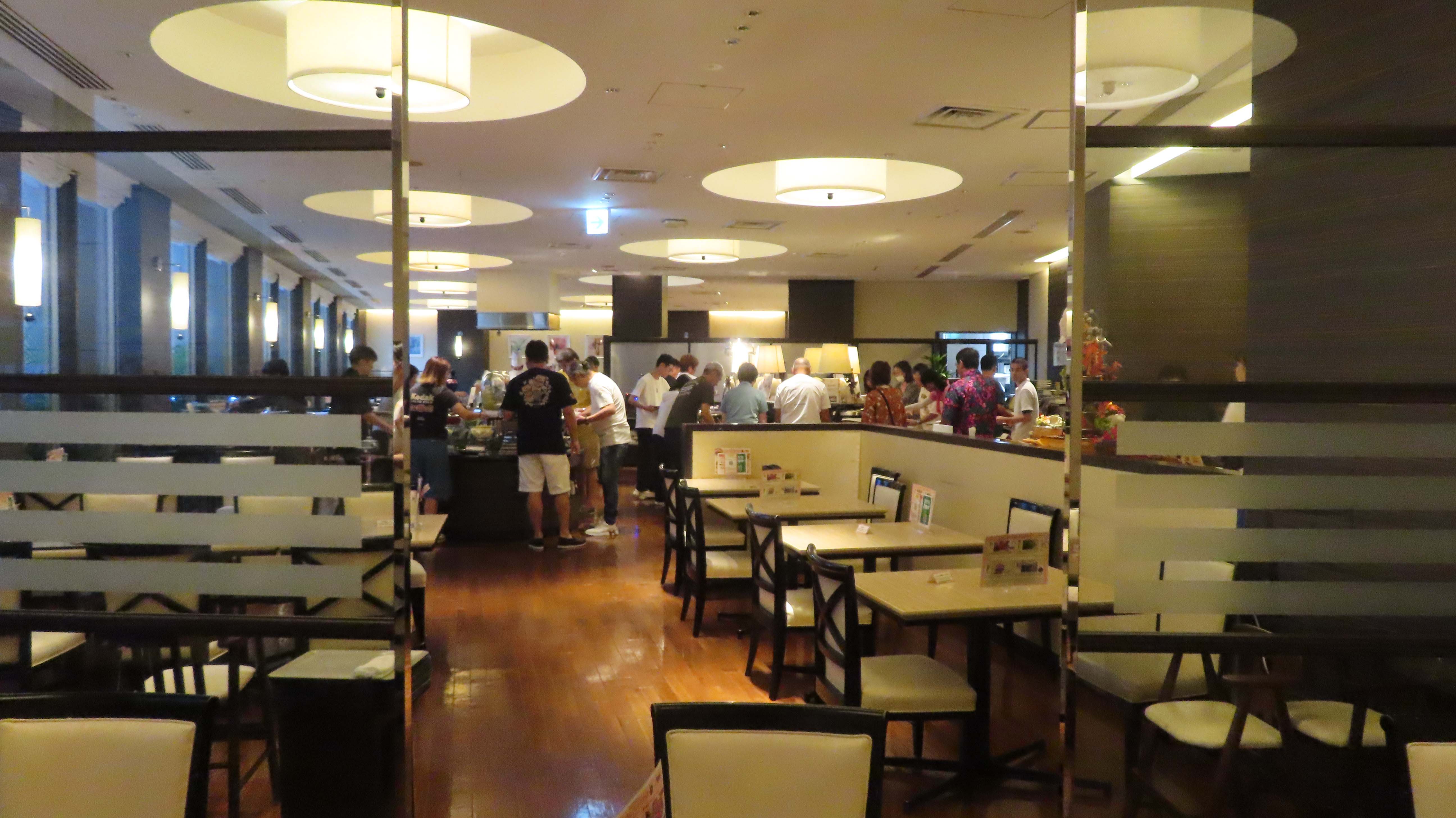 | 朝食会場。 6:30の時点で並んでおり、 一人ずつ呼ばれていた。 係員が声を張り上げて 客の番号を呼んでおり、 よく喉がかれないものだと思った。 |