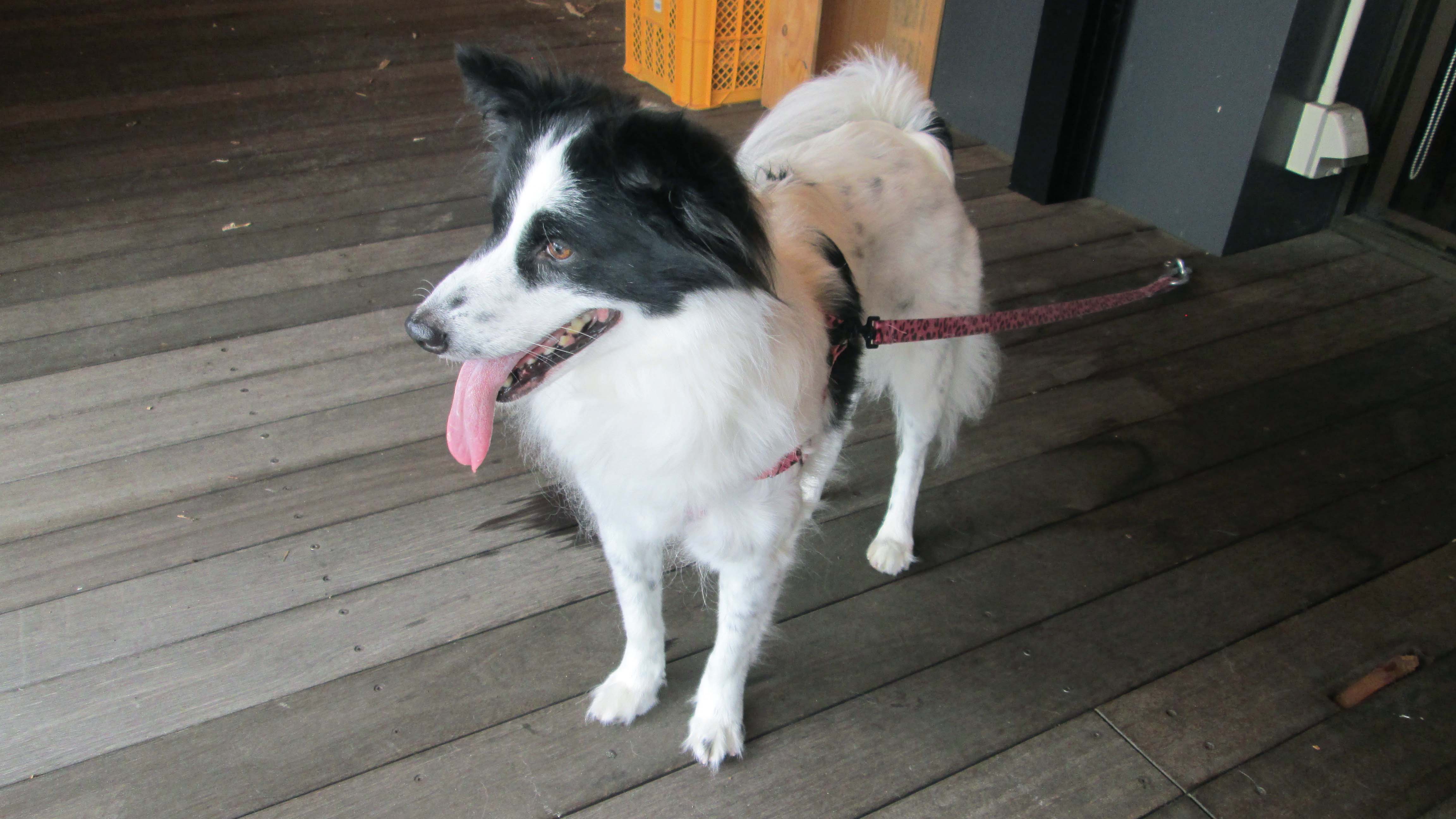 | 店は混んでいた。 | 着くなりマリー、水分補給。 気温が低くてよかった。 |