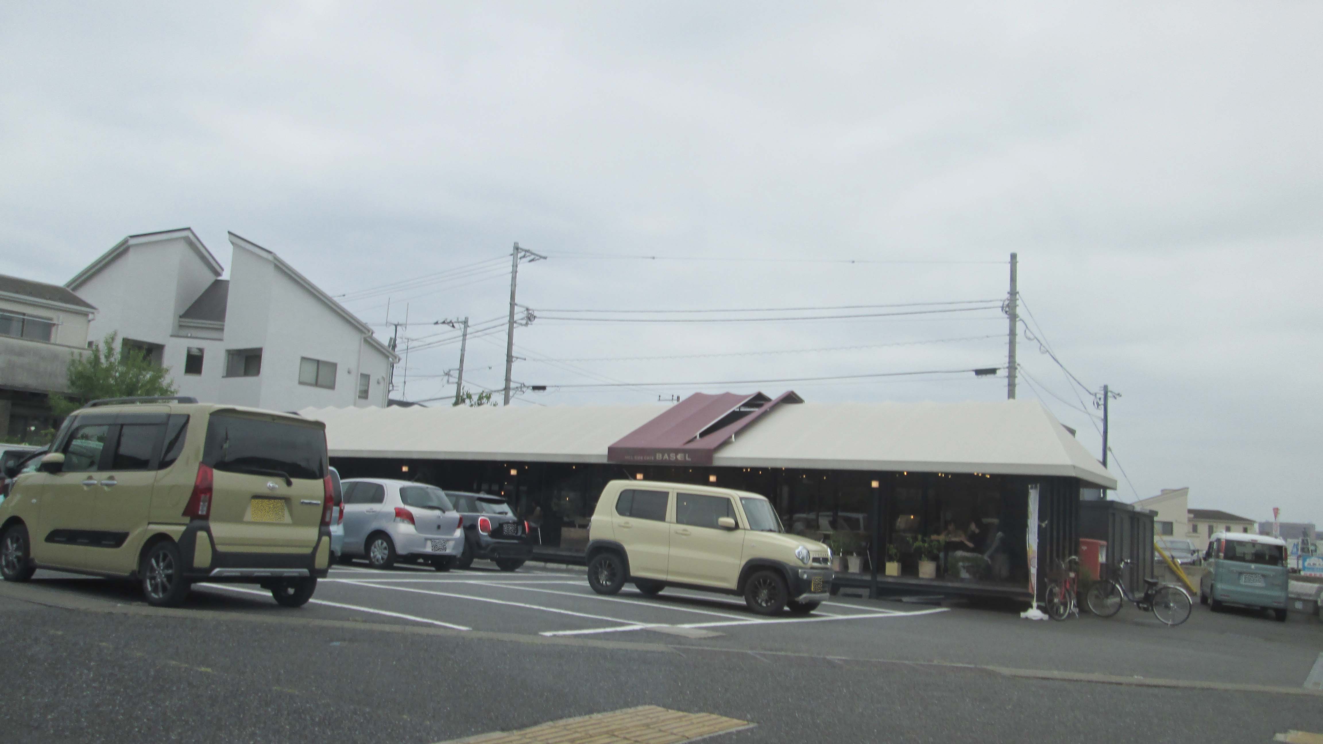 付近に「BASEL」という、 スイスのバーゼルのことだと思うが テラス席はペット可のカフェがあり、 病院から電話して訊くと、 1席空いているとのことで予約した。 |