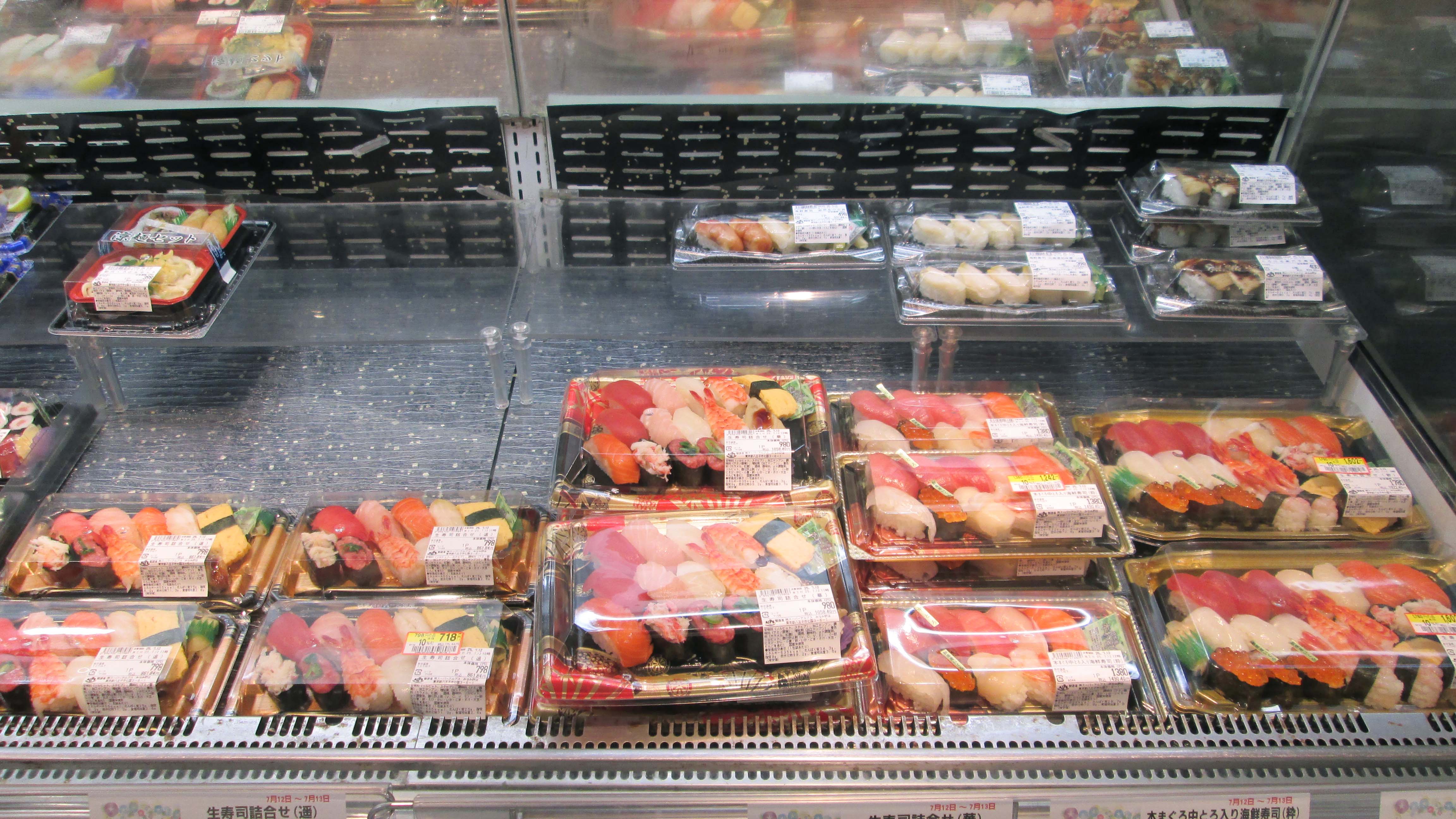 | もっと近ければ行くけどね。 | スーパー自体はいたって普通。 | この日は左端の寿司にする。 値下げしているヤツじゃないぞ。 |