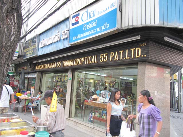 | THONGLOROPTICAL 55。奥さんが自分で下見してきて決めてきた。 直ぐ1,2軒隣にも眼鏡屋があるのだが、この店舗が”大きい”とのことで 決めたそうだ。その決定は正しかったと言えるだろう。 クレジットカードも使えてグーだ。 |