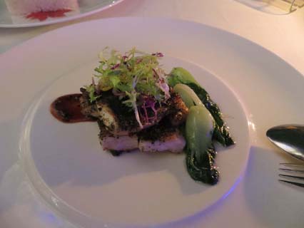 当初コースメニューは見た感じ量が多いので、 鱈料理に目を付けて単品料理をオーダー していったのだが、コースメニューの中の 「アラスカ蟹の爪」というのがどうしても食べたく、 それを単品で頼むとそれだけで千数百バーツに なってしまう。するとボーイがコースメニューを お二人で召し上がっては?と提案してくれた。 |