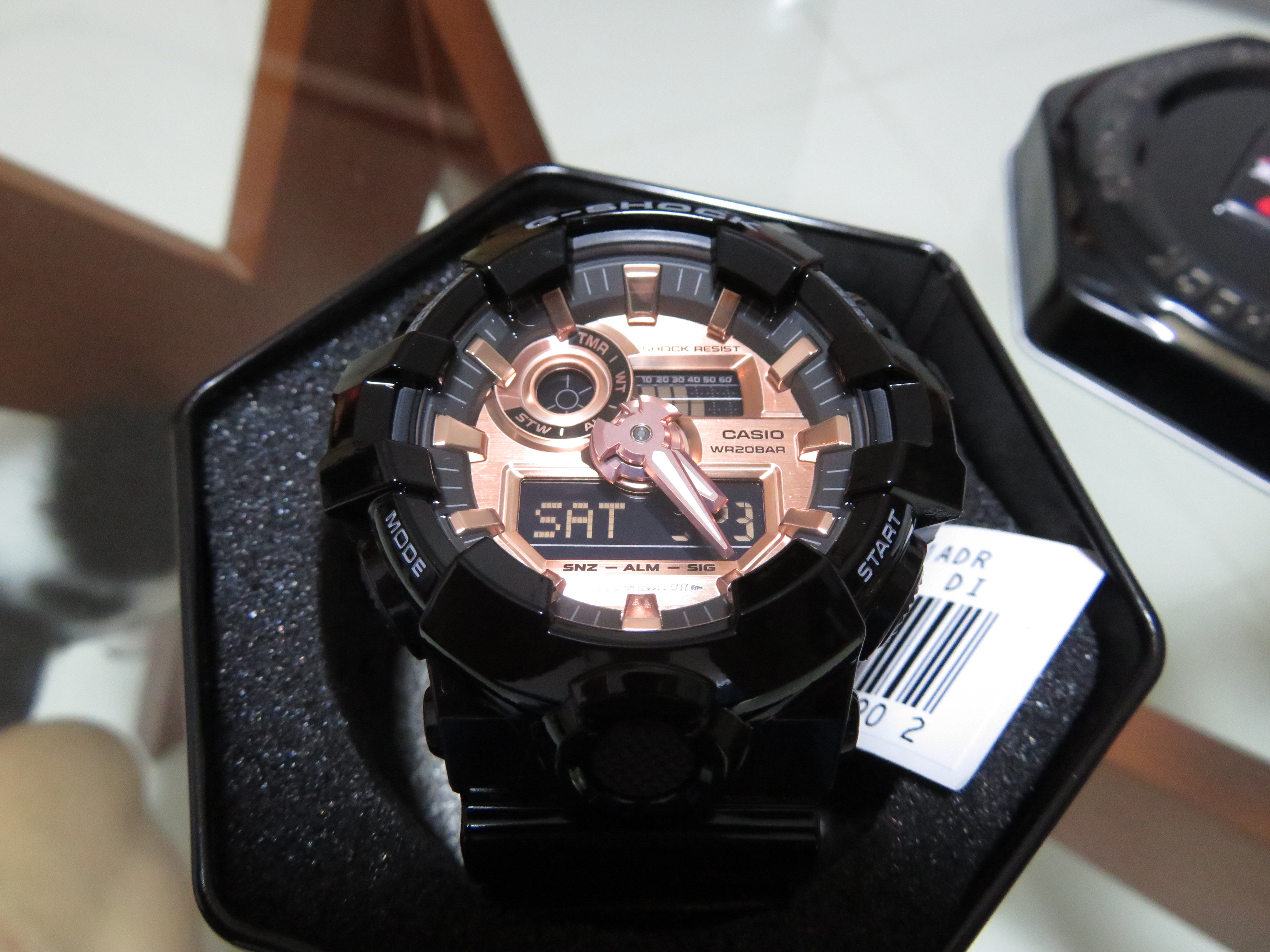 | こちら、GA-700MMC-1AJF 割引価格THB 4,680。 最初にこのモデルを買うと、THB 300の割引券が付いてくるので、 次のモデルを買うときに割引できるとのことで、こちらから会計してもらった。 最初と言っていることが違ったが、どうでも良かった。 このモデルはピンクが薄いので目付がよりきれいに見える。 |