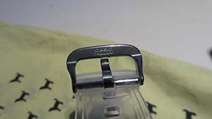 | GM-6900は標準モデルは ベースが黒だったが、 本機はベースも白なので、 デザイン上の不一致から 救われている。 よく見ると、バンドはレバーで 脱着可能だった。 |
