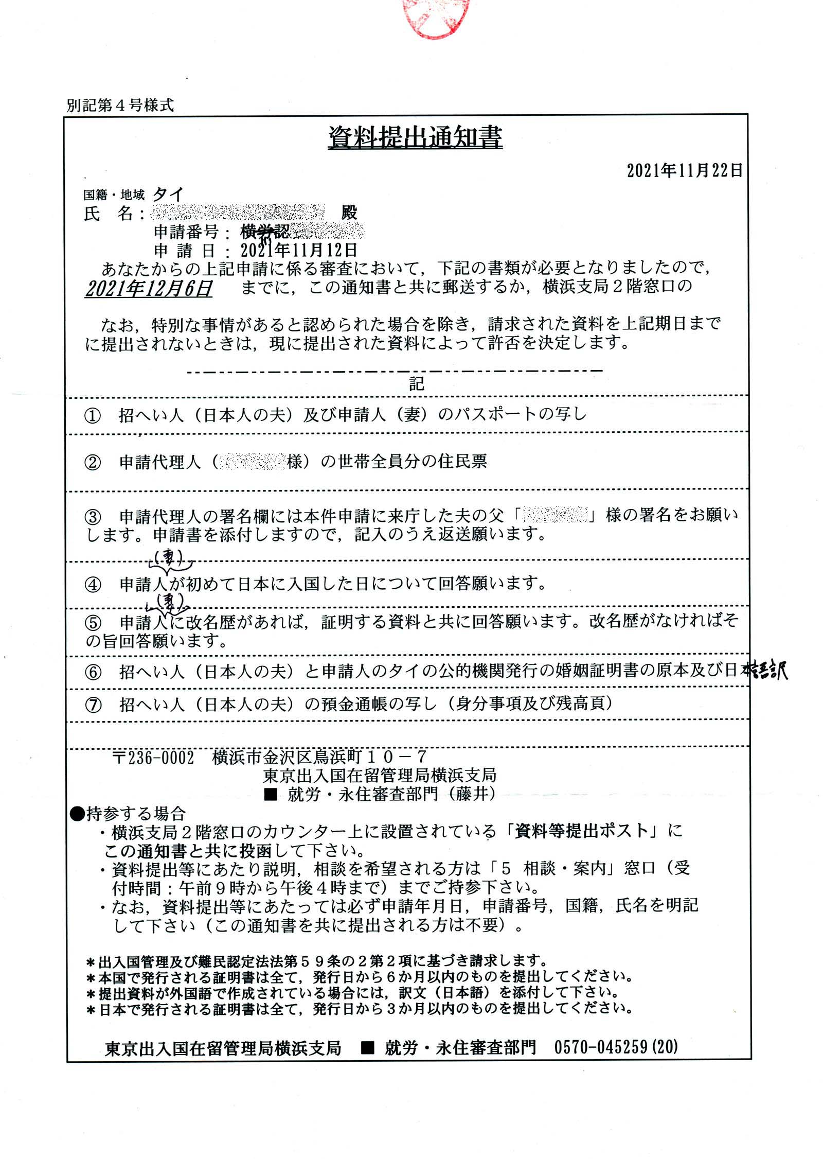 ■2021年10月25日:タイ人である妻の日本での在留資格申請