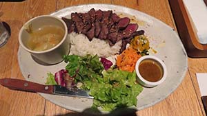| ステーキプレート \1,880 | ローストチキンプレート \1,280 | どちらも飲み物付き。 うまかったので、妻はまた来たいとのこと。 |