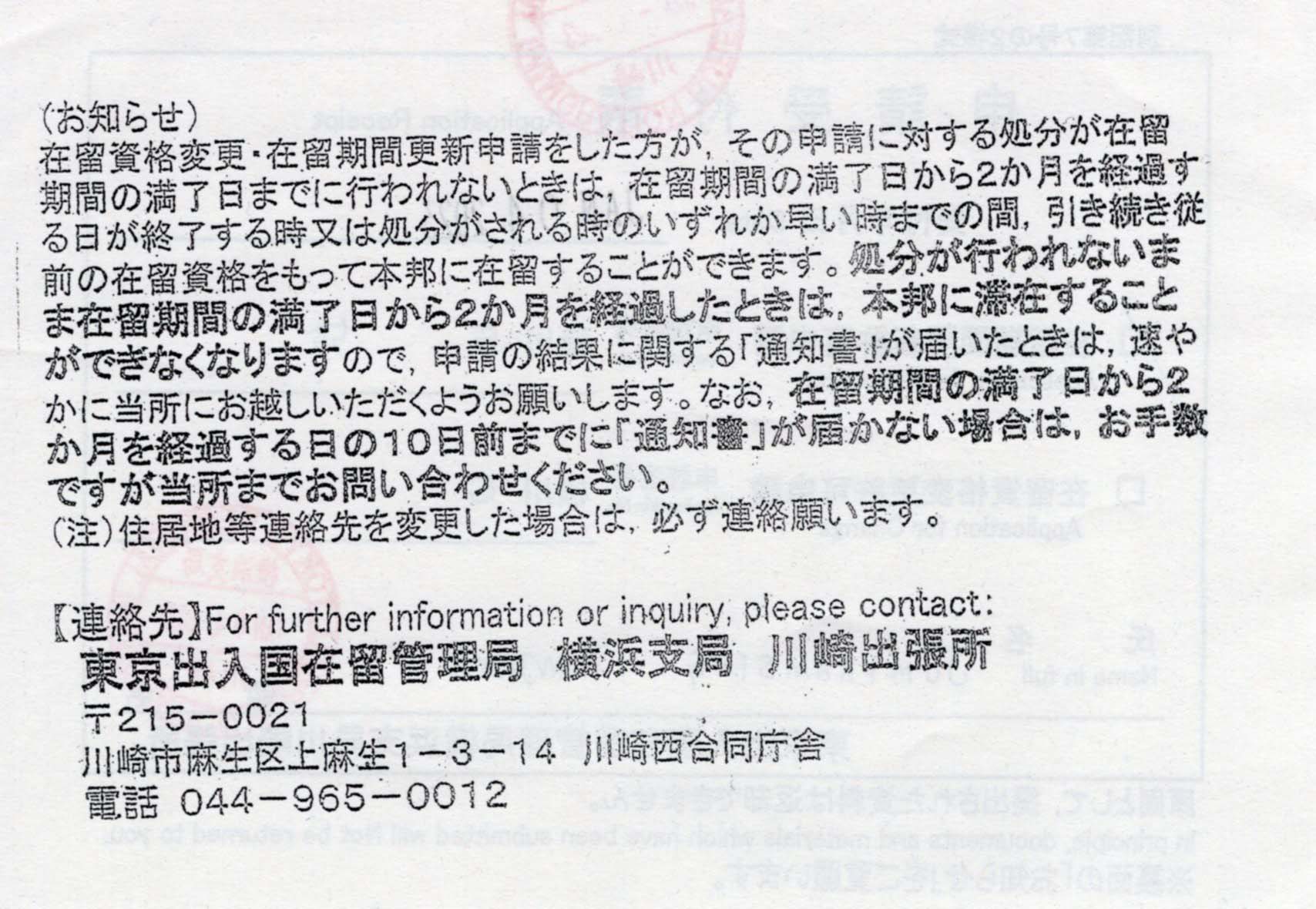 出入国管理庁は、東京の本局ではなく、行く予定の川崎に電話しないとダメだった。