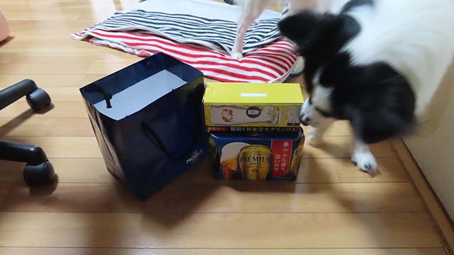 | あ、おつまみ付きのに決まりだわ!とかいいながら・・・ | 結局、グラス付きのパックを購入。 |