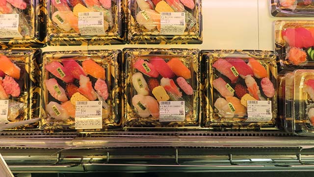 | 晩飯を漁りにスーパーへ。 マグロやいくらが食べたかったが、サーモンは2つも3つもいらないんだよな・・・ |