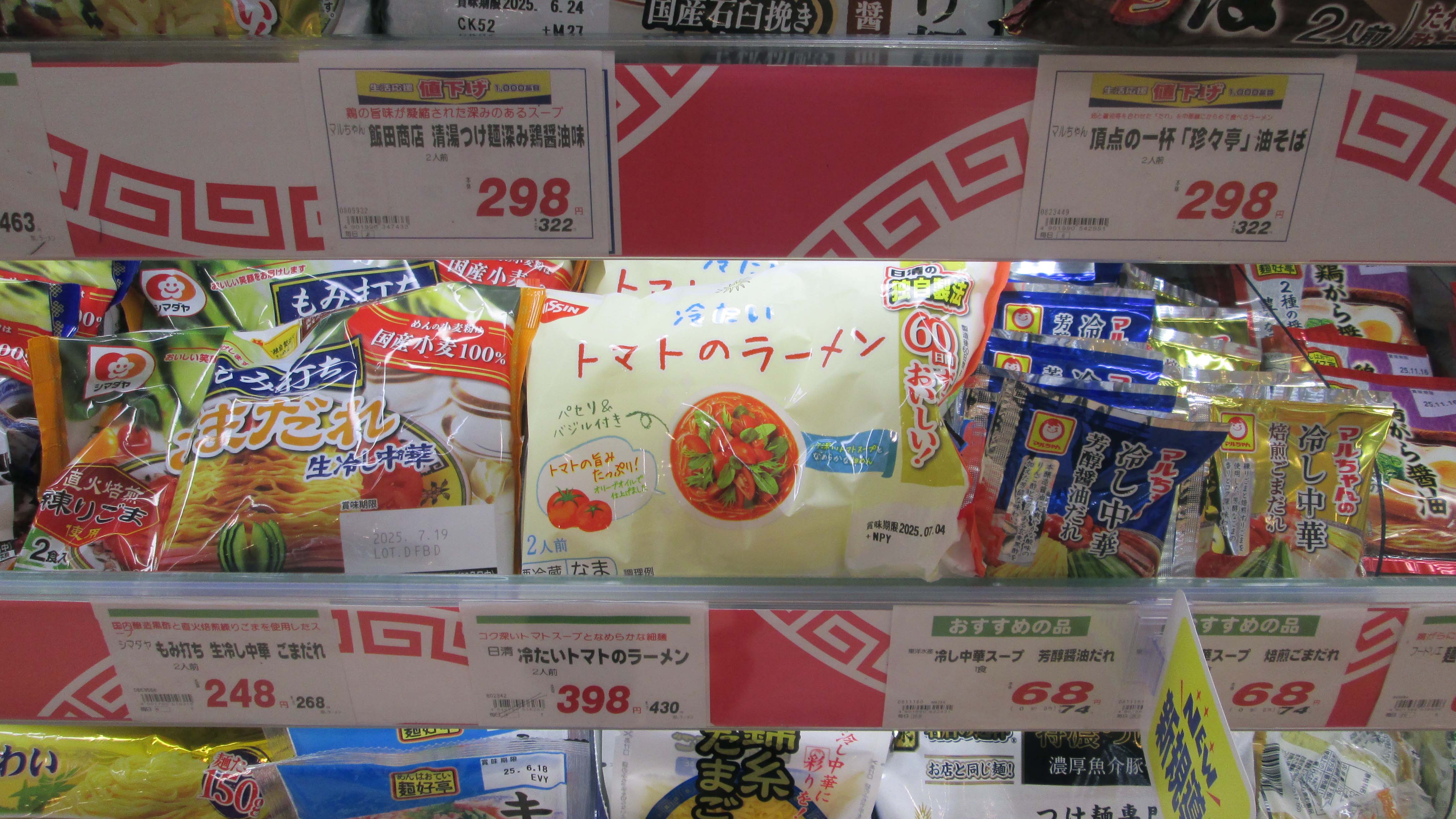 | 今日は肉がいいのないなあと思っていたところ、 こんなのを発見。なんだトマトのラーメンとは。 チャレンジしてみるか。 |