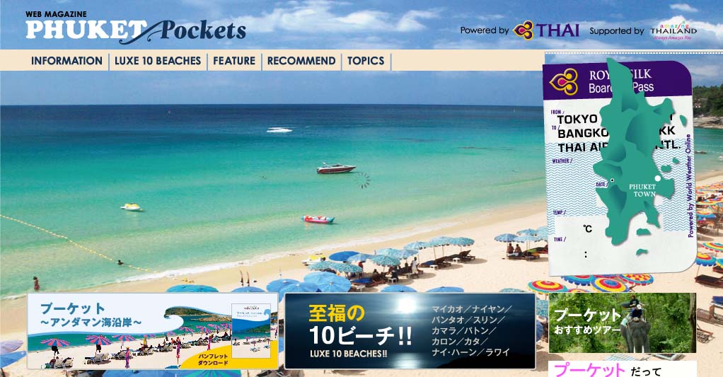 プーケットといっても、ビーチがいっぱいあってガイドブック等で調べても、 なかなか何処が良いのか決められないが、このページを見ればプレビューが可能だ。