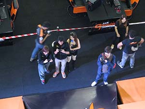| 1階の催物会場では、JIB COMPUTER主催のゲーム大会が開かれており、コスプレ・コンパニオンもいた。 群衆を見て、下まで降りるのが面倒なので上階から撮影した。 |