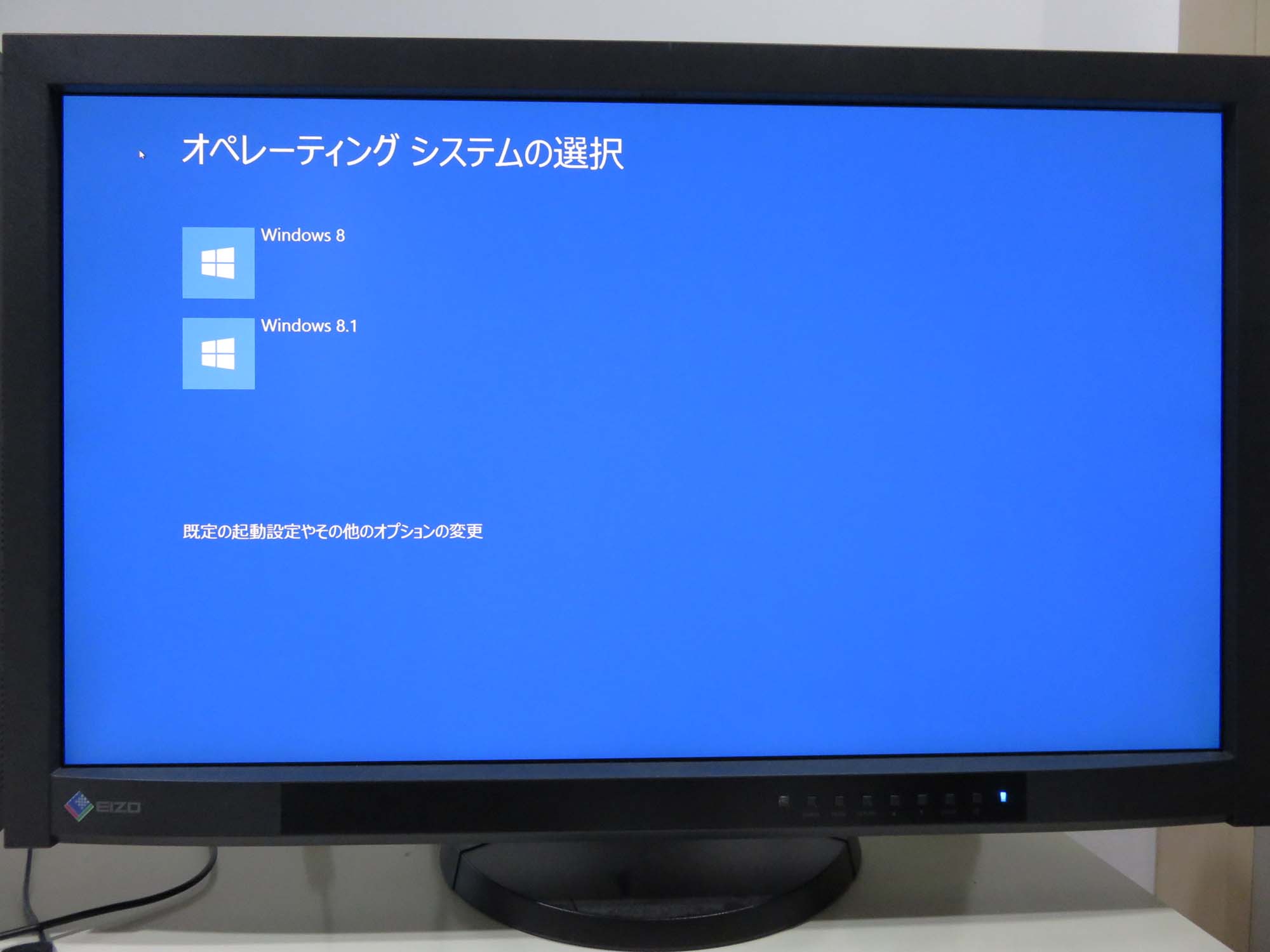 で、再インストール中に 再起動するとこんな画面が。 当初は、データドライブにしている HDDにW8.1の記憶が あったからだな、と思っていた。 なおここで8.1を選択すると、 当然だが最初に戻る。 |