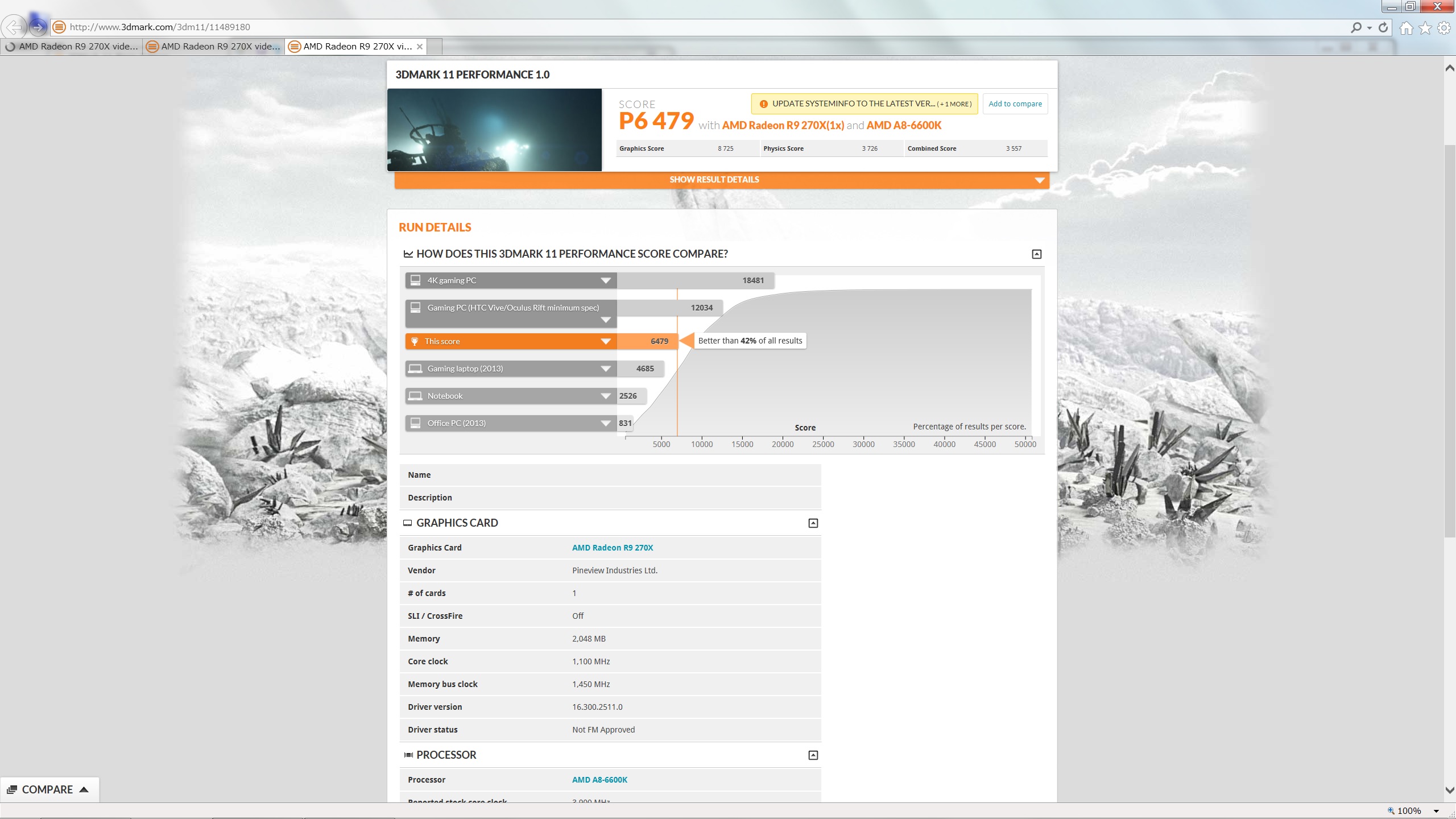 | 2nd 3DMark06のスコア:18550→17753 2nd 3DMark11のスコア:P5482→P6479 2nd 3DMarkFSのスコア:3895/10588/84147→5032/10071/67340 (FS/CG/IS) 直前のスペックはこちら |