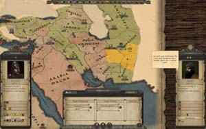 423年夏の戦況。当初の目論み通りササン朝を小アジアに追い込んだ。 これで、さらに東・北東のササン朝の属国にどのように対するか。 これらの国々も、領地は村ひとつだとしても、最低でも定数か定数に近い 軍団を1個は保有しており、はっきり言って、 彼らに一丸となって攻め込んでこられたら勝ち目はない。 が、先ほどのAbarshahrやペルシャは必ずしも我が国に敵対していないので、 そういった国々が反旗を翻すまではいかずとも、 中立を貫いてはくれぬかと、僅かな望みを掛ける。 |