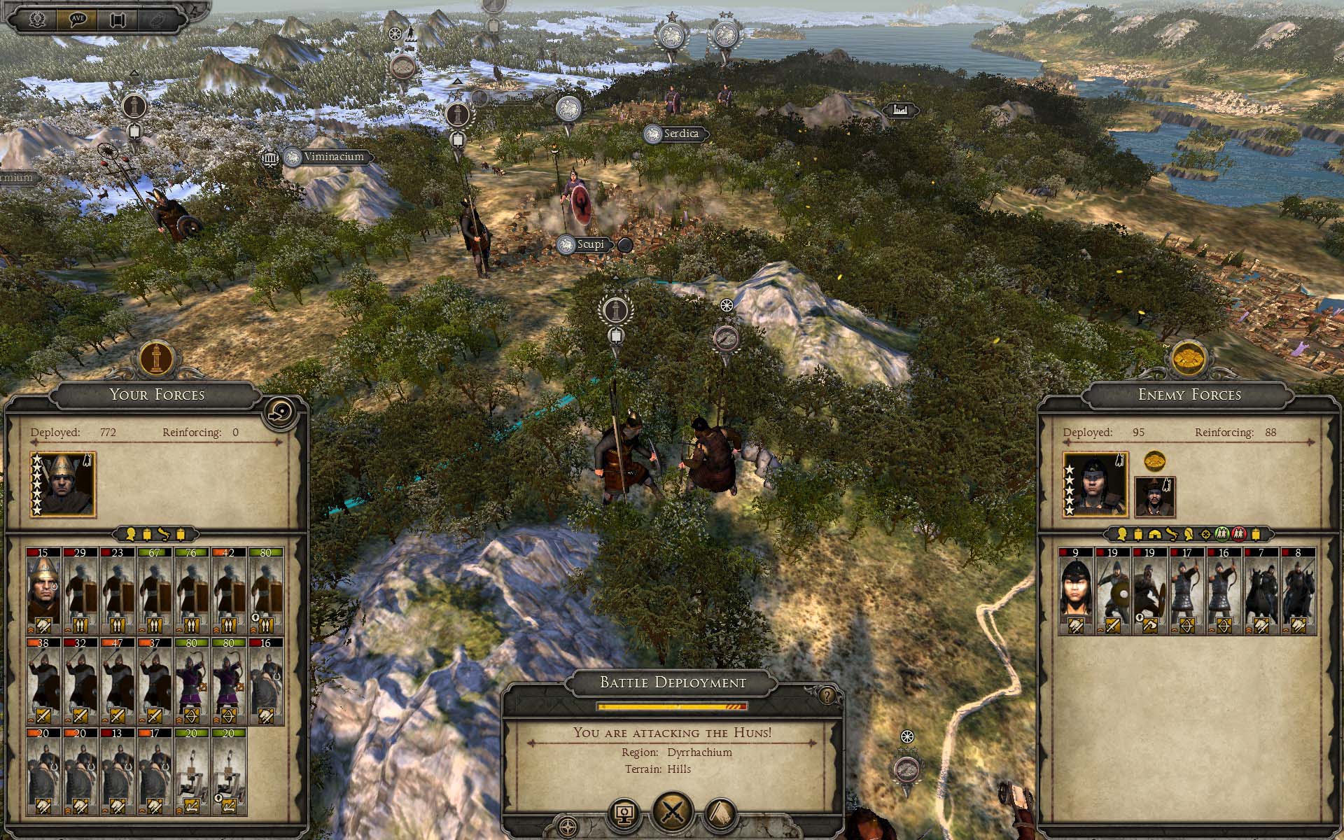 | 黒海の都市に攻めてきたフン族を、ダキアから派遣した軍団で 迎え撃つ。 |