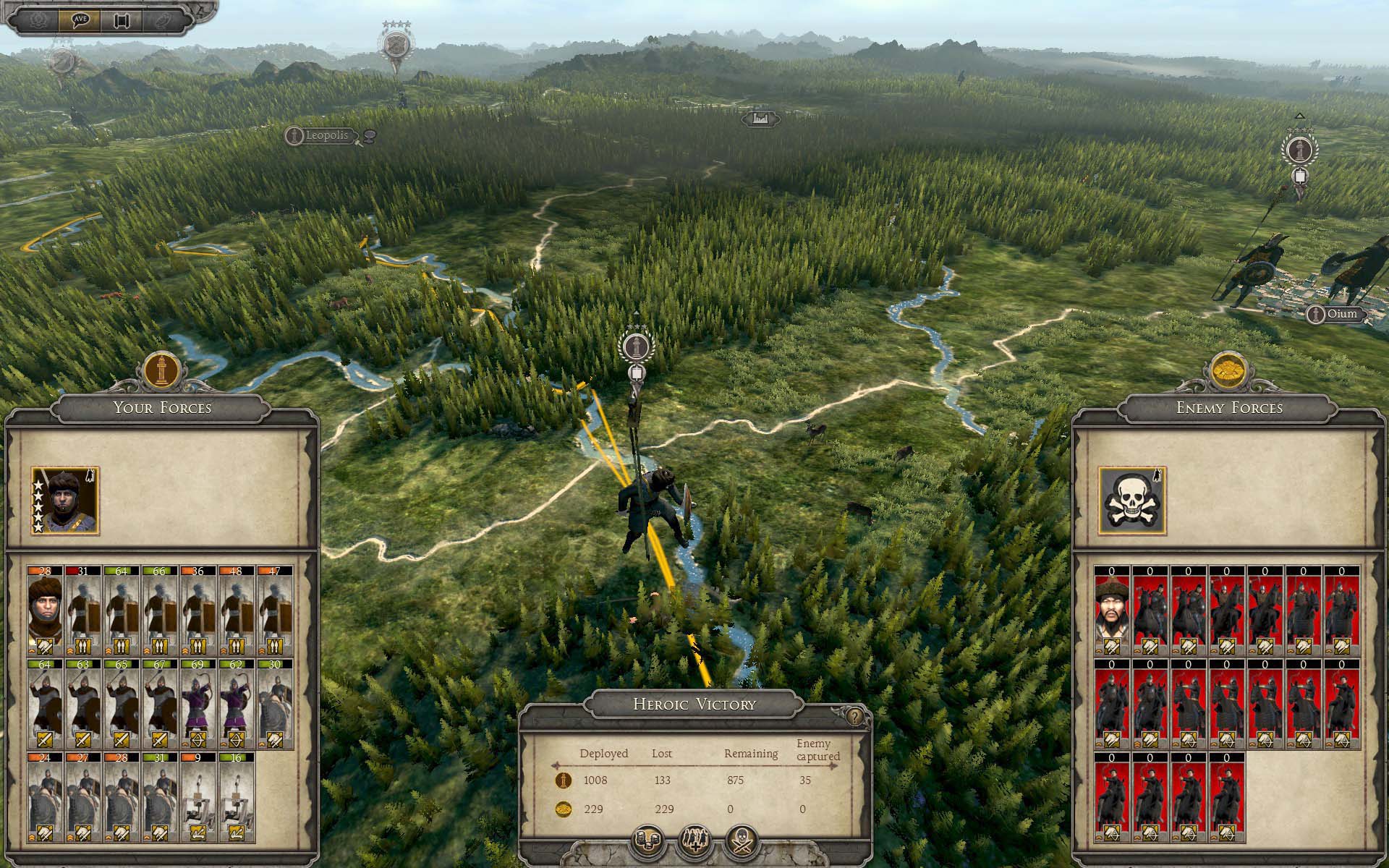 | 襲われて、迎撃するも | 敗退。 | さらに追跡される。しかも、後方に 新たに2個軍団が沸いている。 こんなのを相手にできない。 |