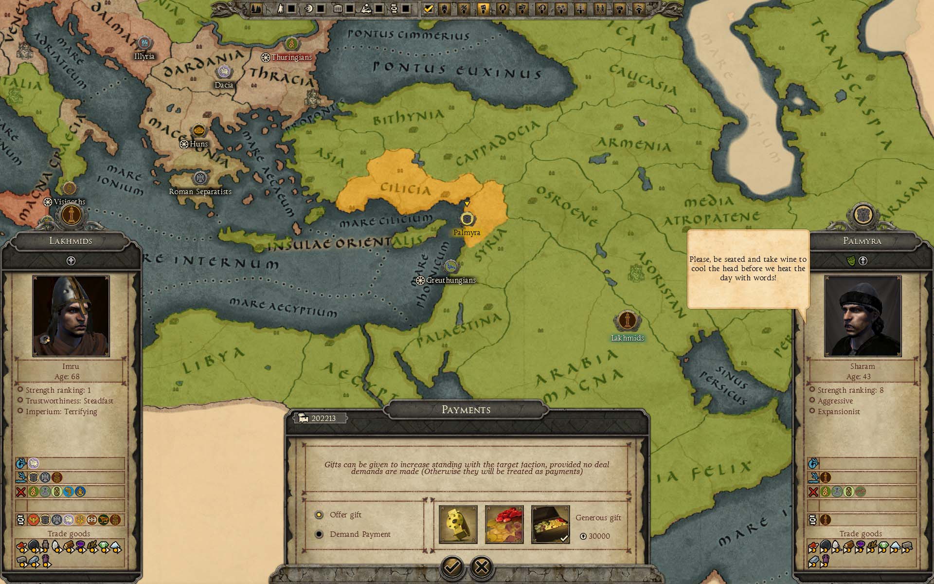 | パルミラに資金援助。 | 440年春の情勢。 | ||