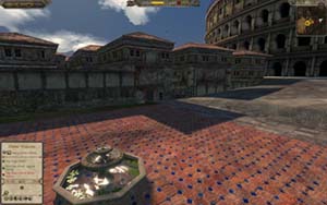| 手前はパラティーノの丘周辺。 | コロッセウム。語源については何も「殺せ」といっているわけではなく、 塩野七生「ローマ人の物語」文庫版第22巻p.198を参照。 手前はドミティアヌス宮。 コロッセウムの右手の芝地はクラウディウス神殿と思われる。 浴場の類は結構省略されている。 |