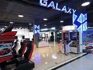 入り口では車が・・・ | 右手に折れると、ジェダイの店が。 | さらに行くとゲームセンターが。 但し客はいなかった。 |