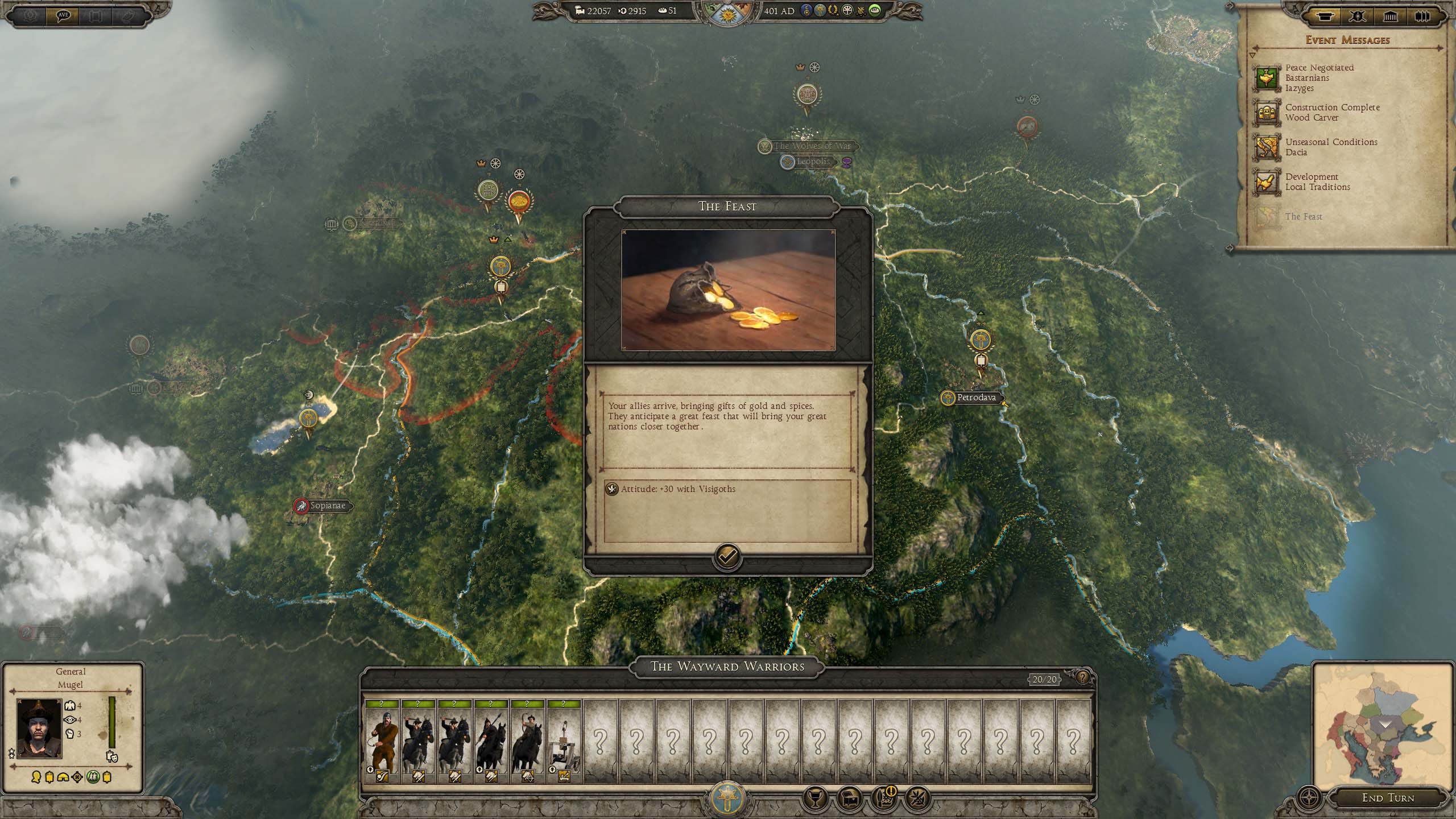 | 前回の宝物の恩恵。経済が向上。 | こっちは祭りの効果。 西ゴート族との関係がより堅固に。 |