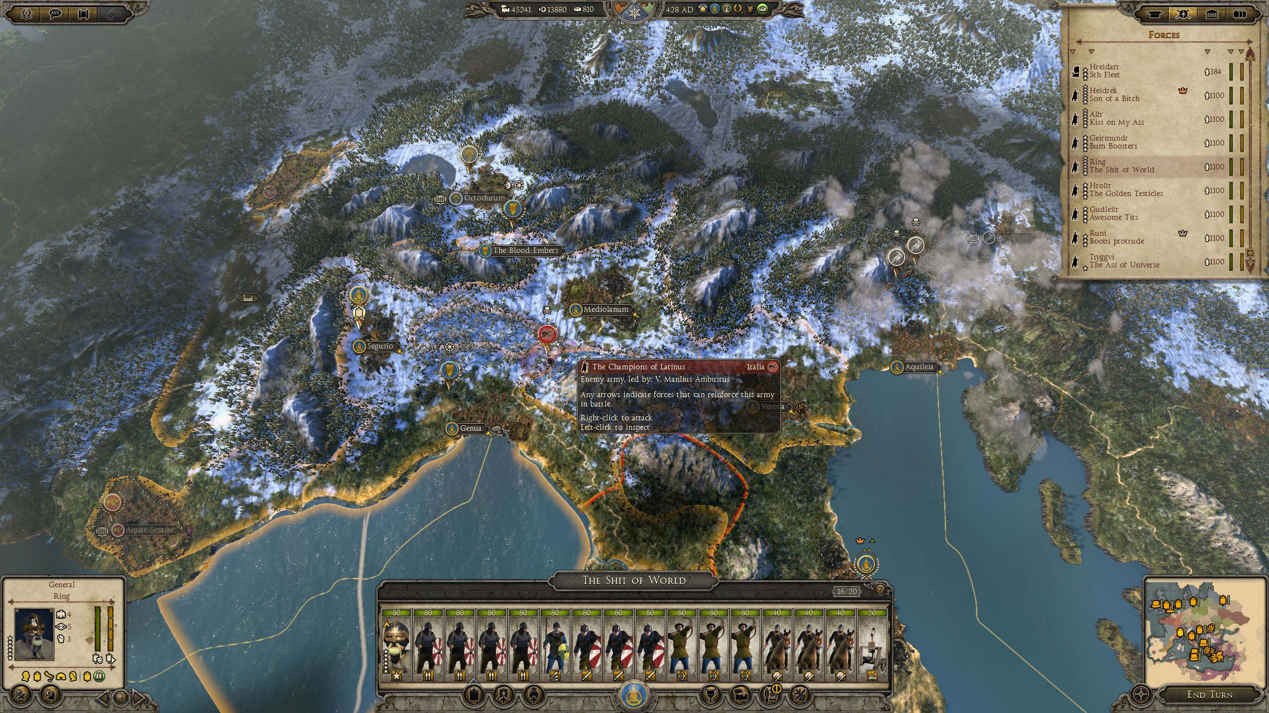ブリタニアを征服しつつ、次の占領地としてイタリアに目標を定める。