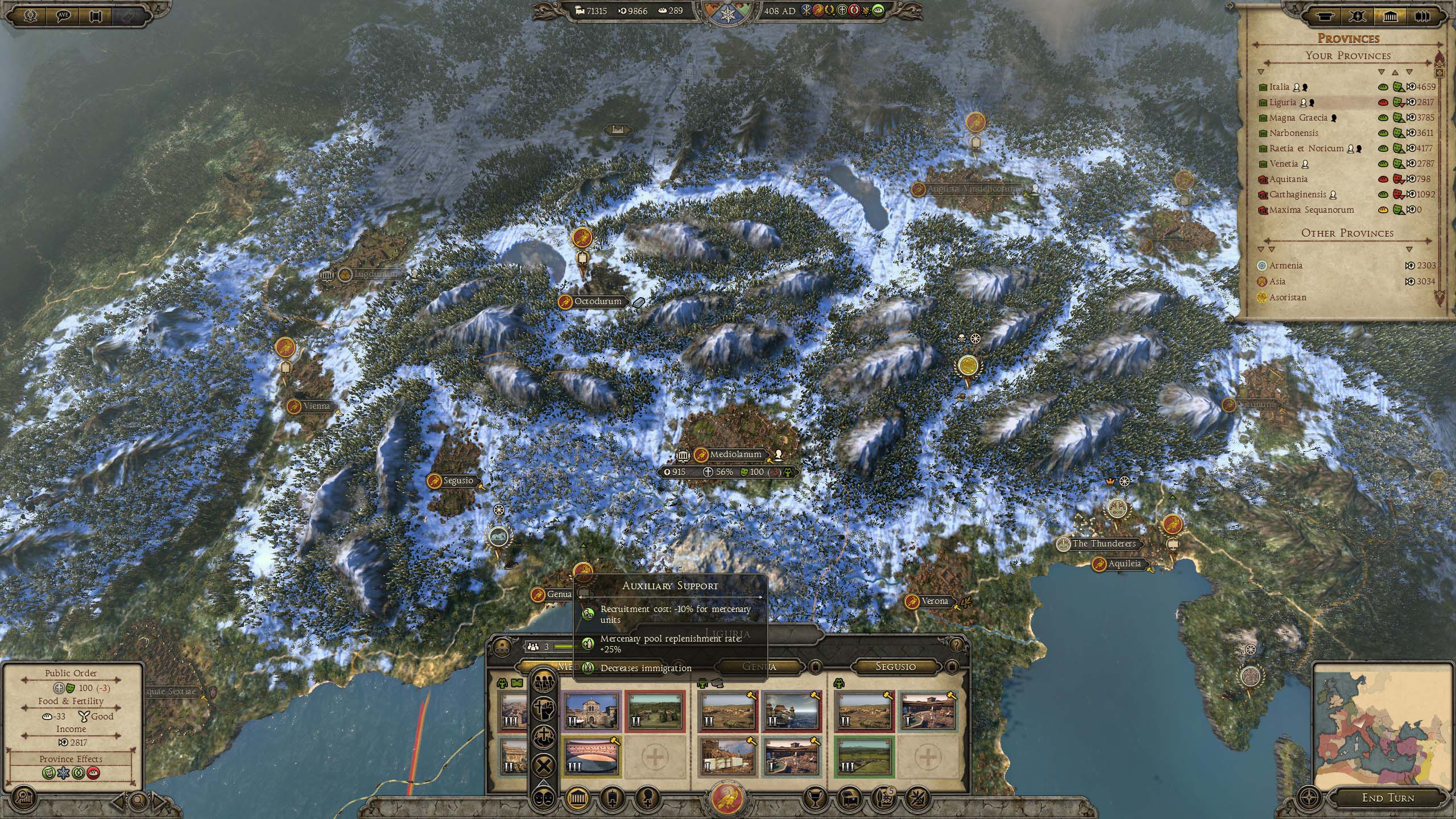 | 研究開発で歩兵の開発 | 第9軍団を新設 | ヒスパニアと今度は防衛同盟。 | |||