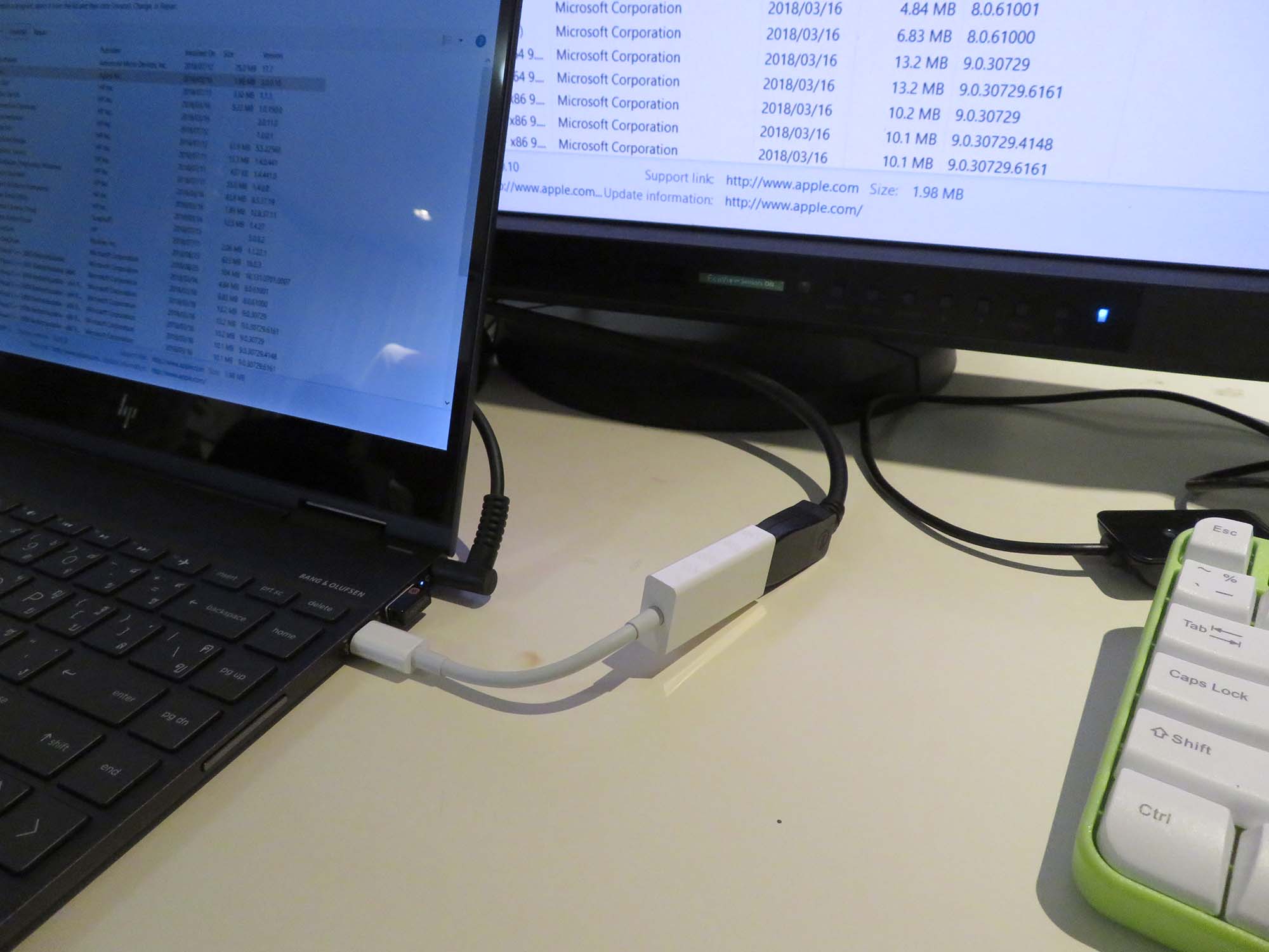 | USB TYPE-Cポートから、 アダプタを介して Display Portで外部モニターと 接続。 Mini Display Portからも繋がった。 |