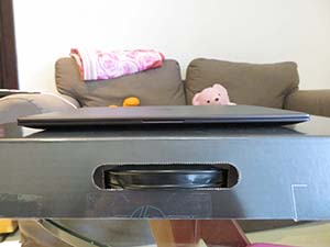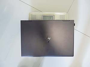 | 蓋を背中側に倒してそのまま裏面にくっつけると、 タブレットモードとなる。 この状態は指でスワイプすることで画面の拡大縮小が自在なので、 閲覧には便利だが、手で持って使うには重量がありすぎる。 また、タブレットモードではキーボードは無効になるが、 キーボードが使えないのは不便だ。 |