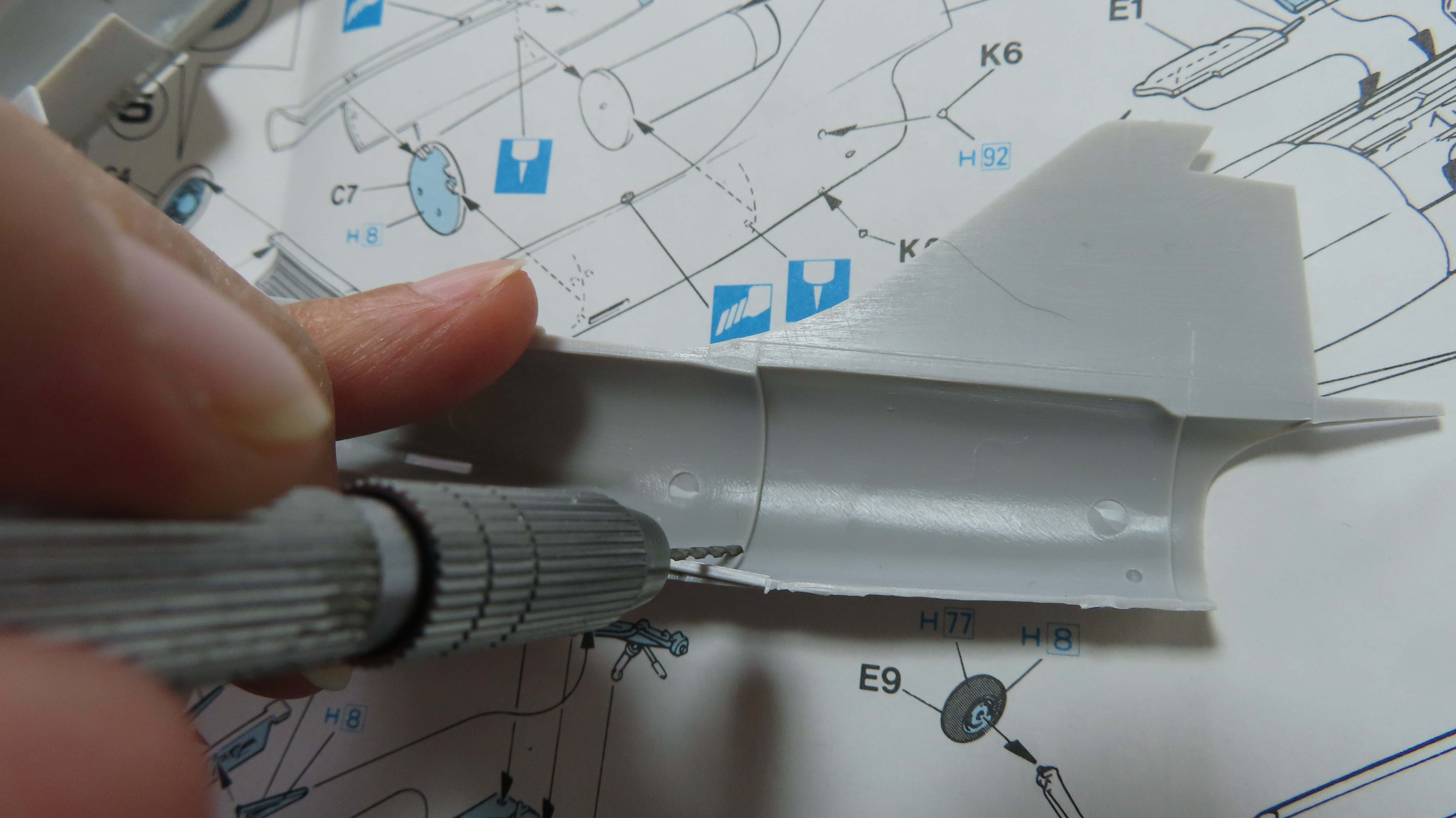 | リベット穴を掘る。 少しして目が痛くなったのでやめた。 |