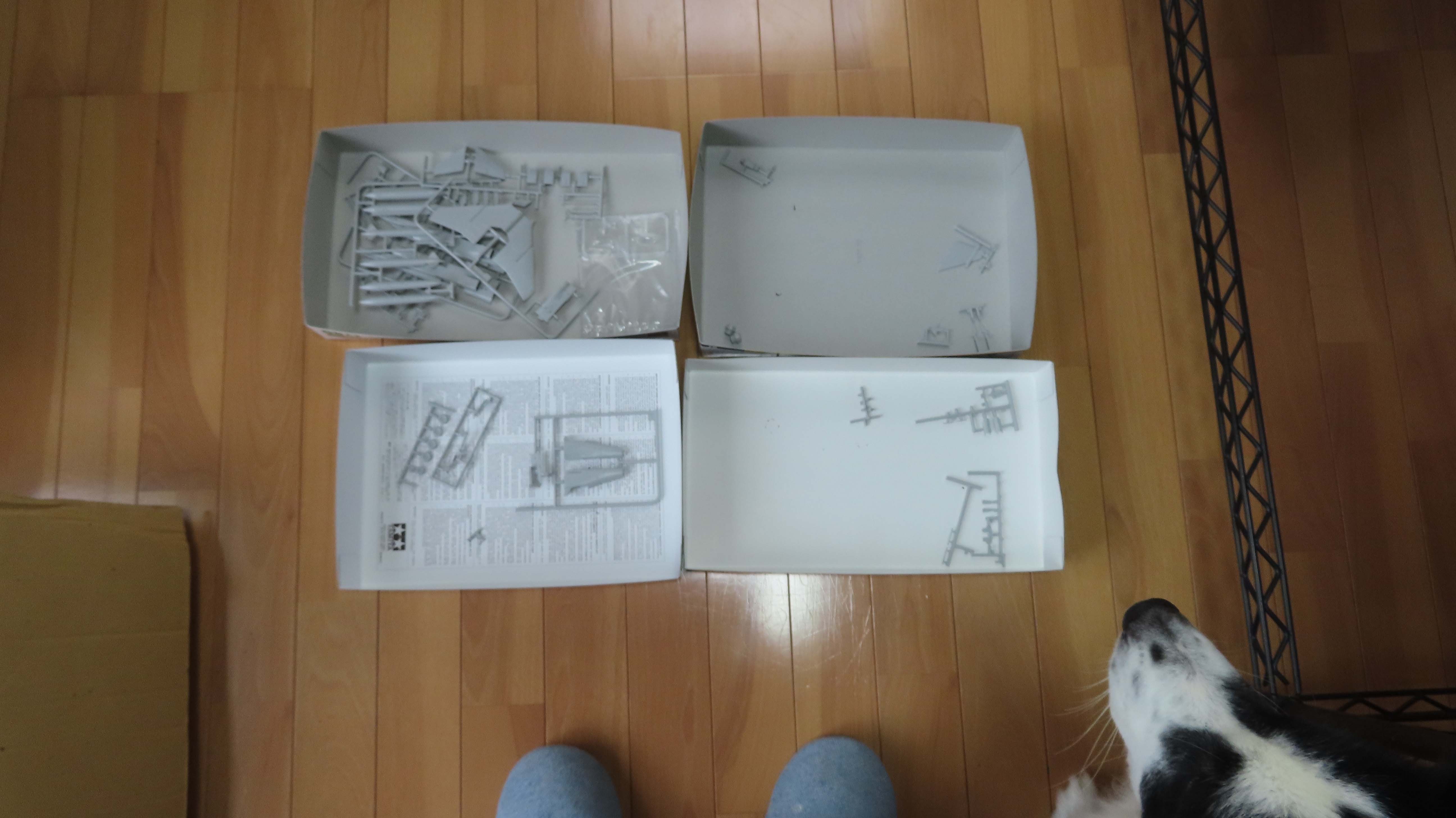5/17 塗装色ごとに パーツ分け。 マリーが点検する。 |