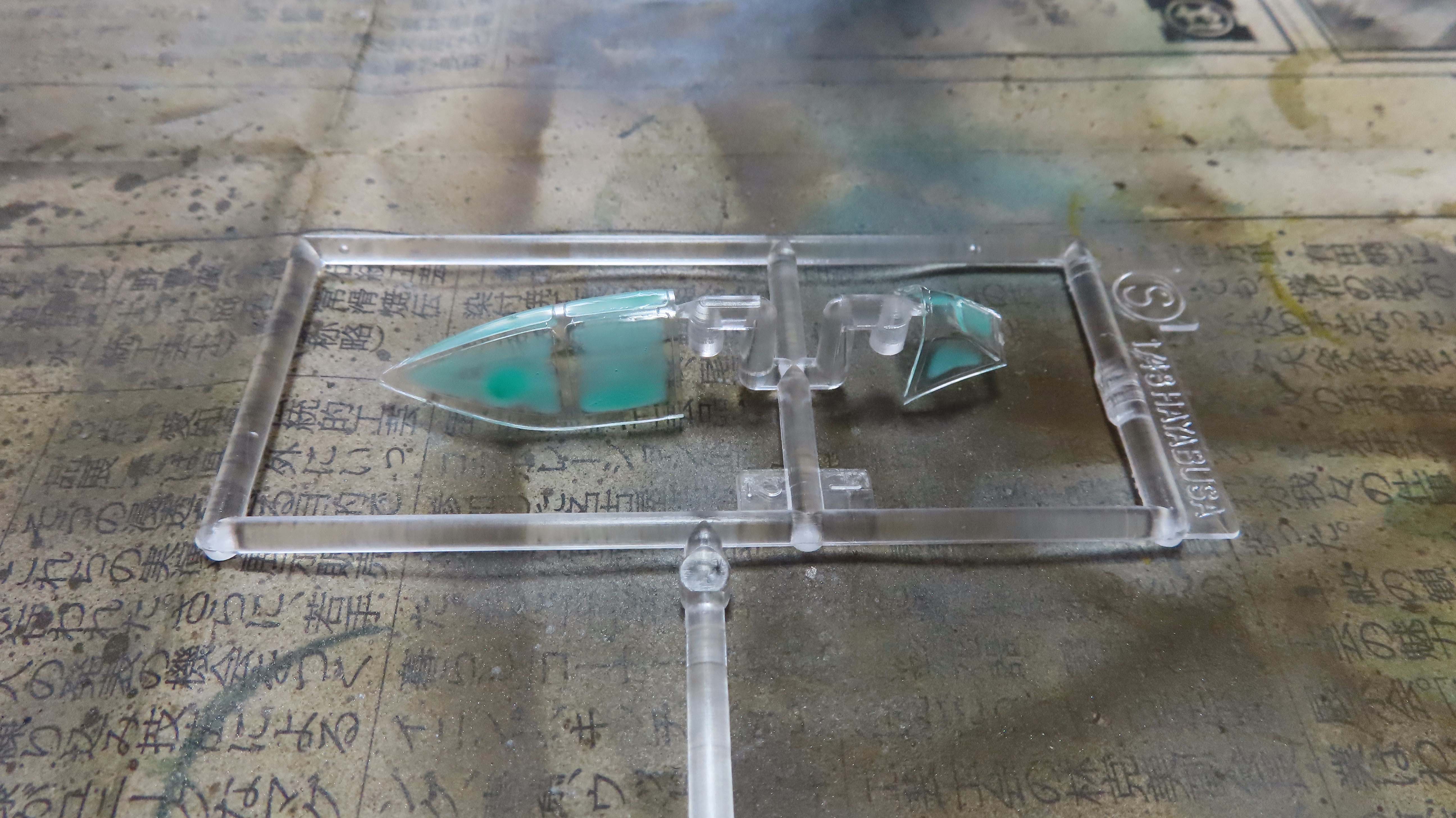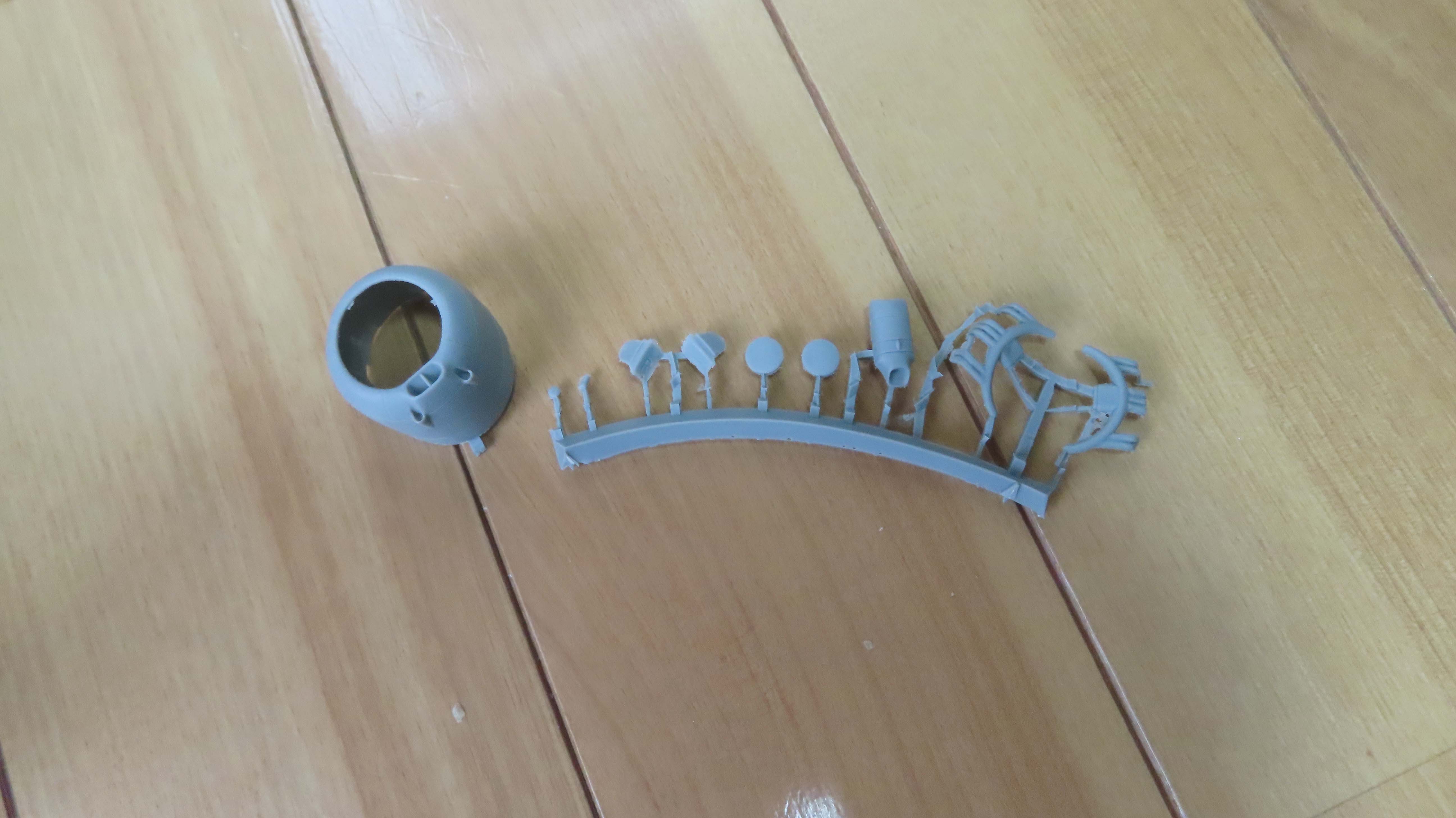 二型のキットをベースに、不足パーツをレジンで補っている。 レジンといってもその名の通り樹脂は樹脂で、普通のプラモと違う樹脂なだけだ。 とはいえ、プラカラーははじくものと考え、 テストしてみたところ、見事に剥がれたw |