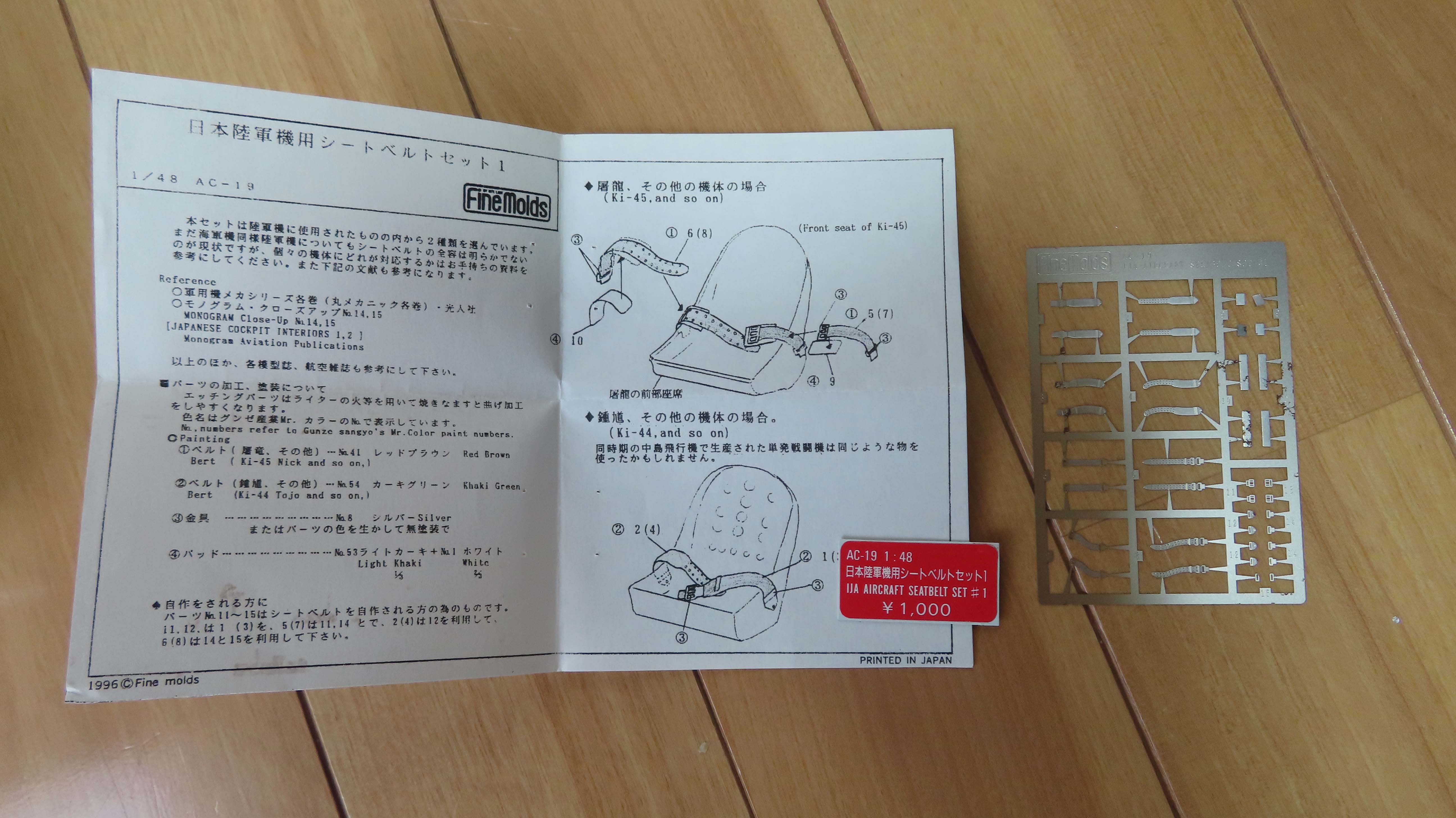 今回はシートベルトも大昔に買った ファインモールドのやつを使う。 |