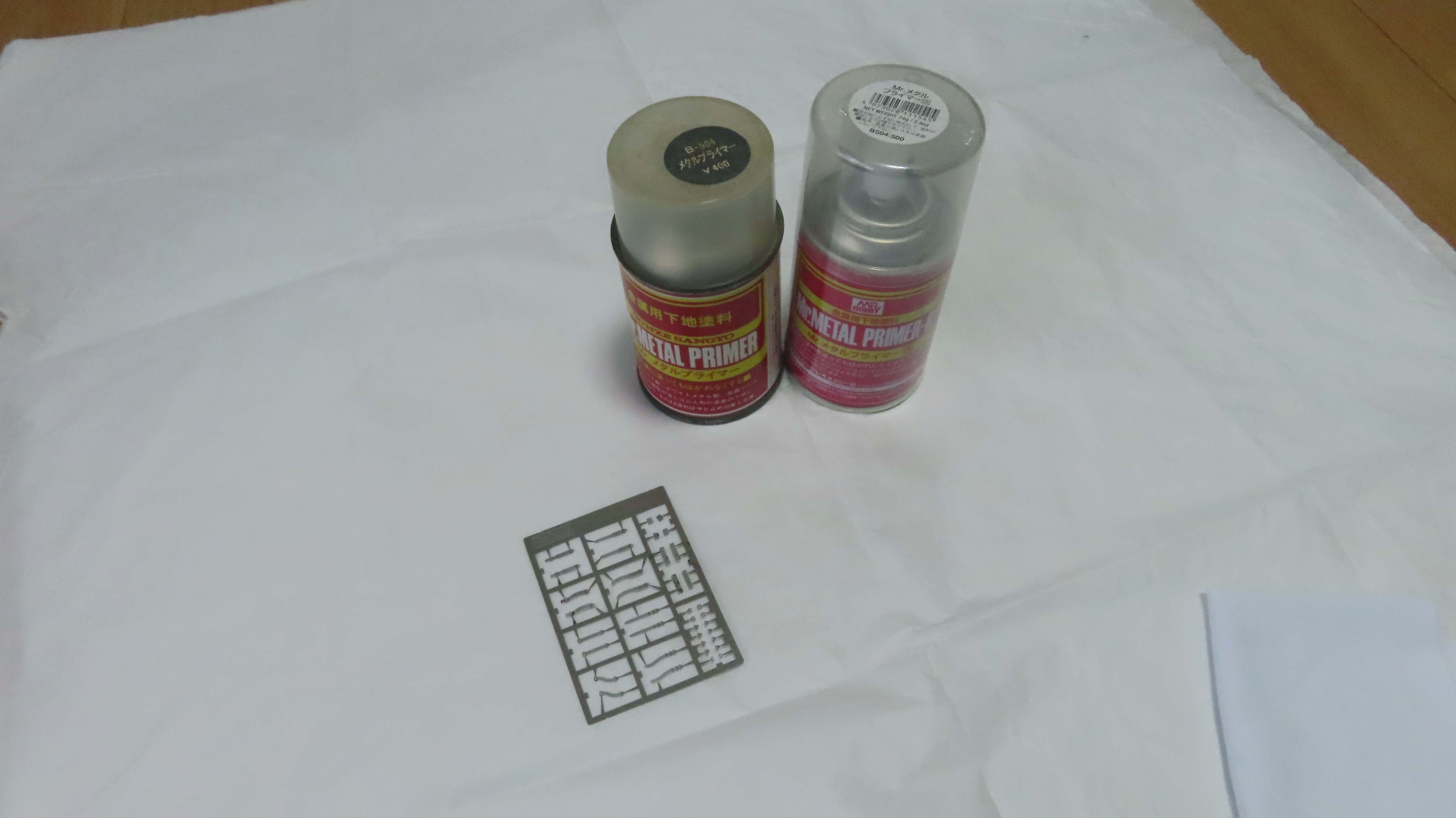 あきらめてメタルプライマーを吹く。 何年前のものか知らないが、 恐ろしく古い缶を発掘したが、 中身が出なかったw |