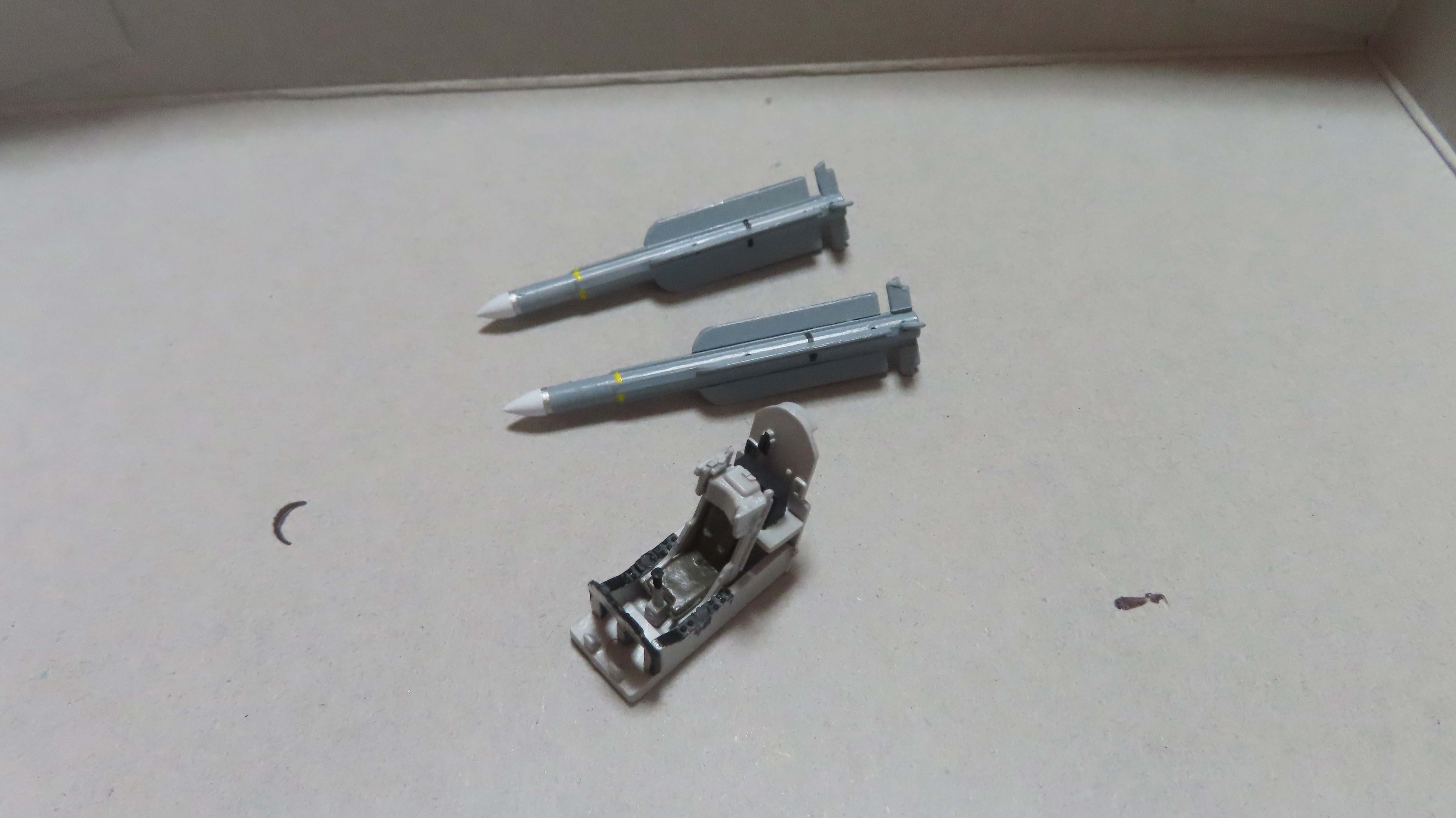 | 6/28 まずはコクピットとミサイルの塗装。 面倒なので筆塗り。 |