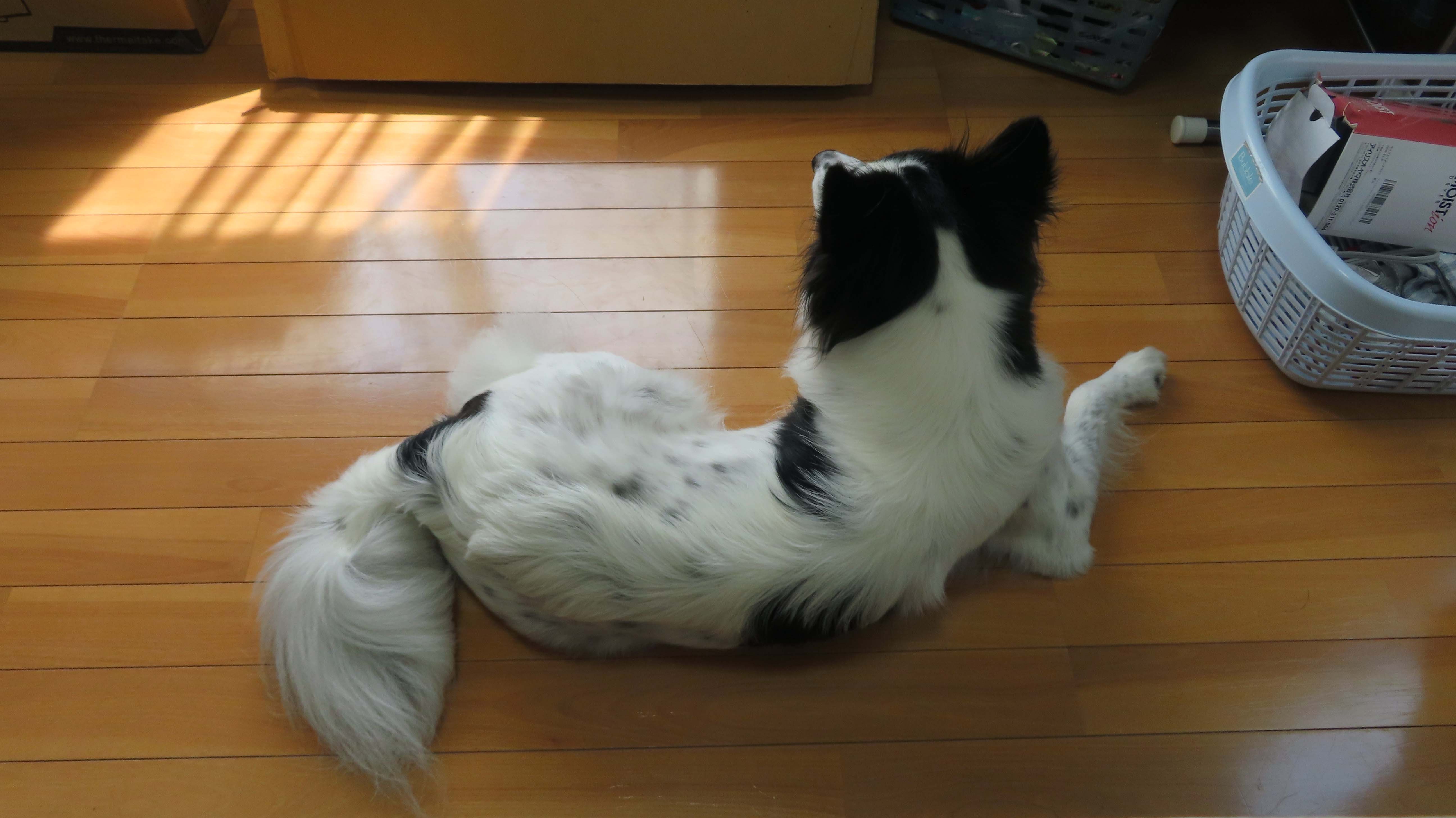 | コクピットの組み込み | 気温が高いので、 マリーも日向ぼっこ。 |
