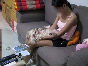 これが動物病院のある通り。 正面にラマ9通りを見ている。 ただ、「ペットプララマ(病院の前の 通りの名前)」と言っても ほぼ通じない。 |