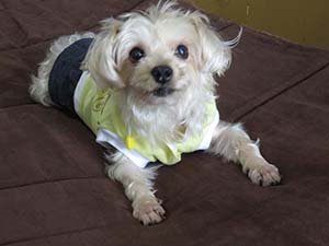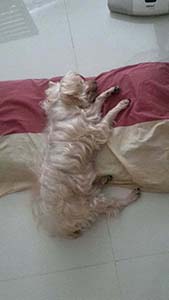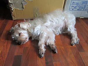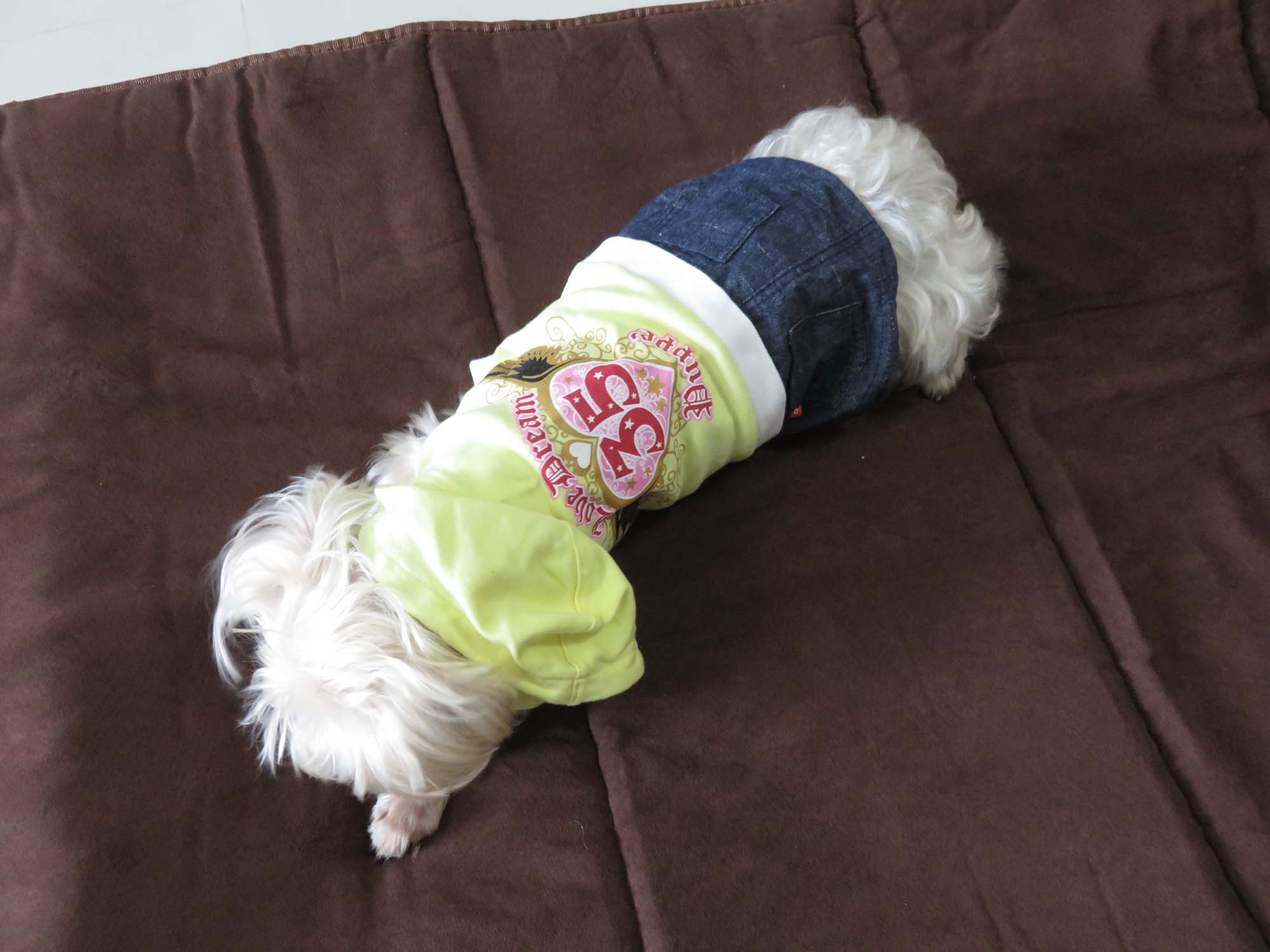 | 飼い主のパンツをどこかから 引っ張り出してきて枕代わりにする。 |