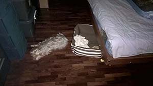 | 食い荒らした段ボールは凄まじいことになっている。 | |||