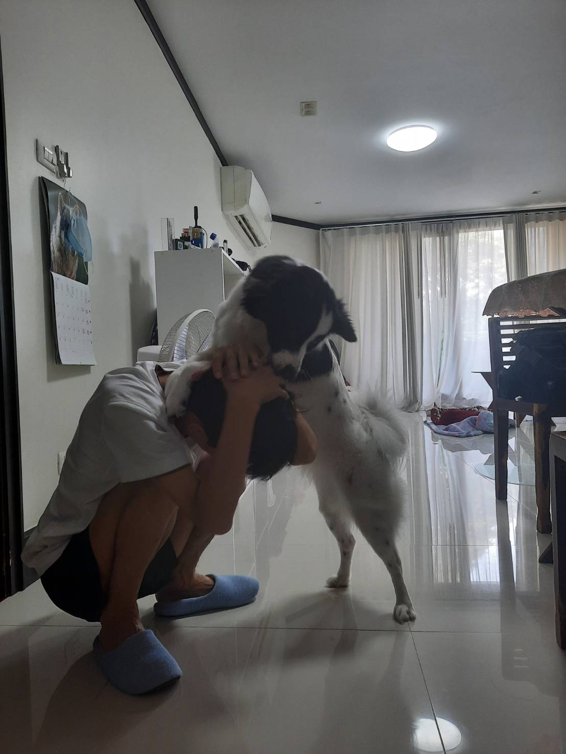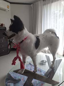 | Thong Lo Pet Hospitalにて マリーは噛むので、 マズルブレーキを買いたかった のだが、ちょうどいいサイズ(2)が なかったので、LAZADAで買った。 |