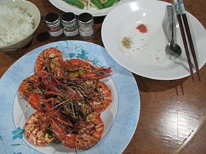 | J AvenueのVilla Marketで海老を買ってきて、Anantaraで買った塩を付けて食べた。美味かった。 | |||
