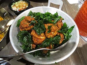 | 今回は会食形式だったので全体の 写真はないが、 これはクン トート クラ ティアム (海老のニンニク炒め)。 |
