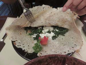 CREPE SEVILLANA 120THB イワシのクレープとのことだが、 イワシは市販の缶詰で、失敗。 |